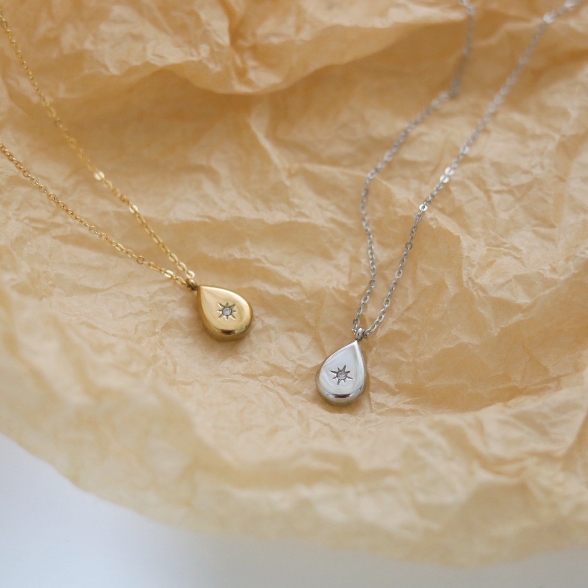 法式高级感立体方牌八芒星镶钻吊坠钛钢项链女精致轻奢水滴锁骨链