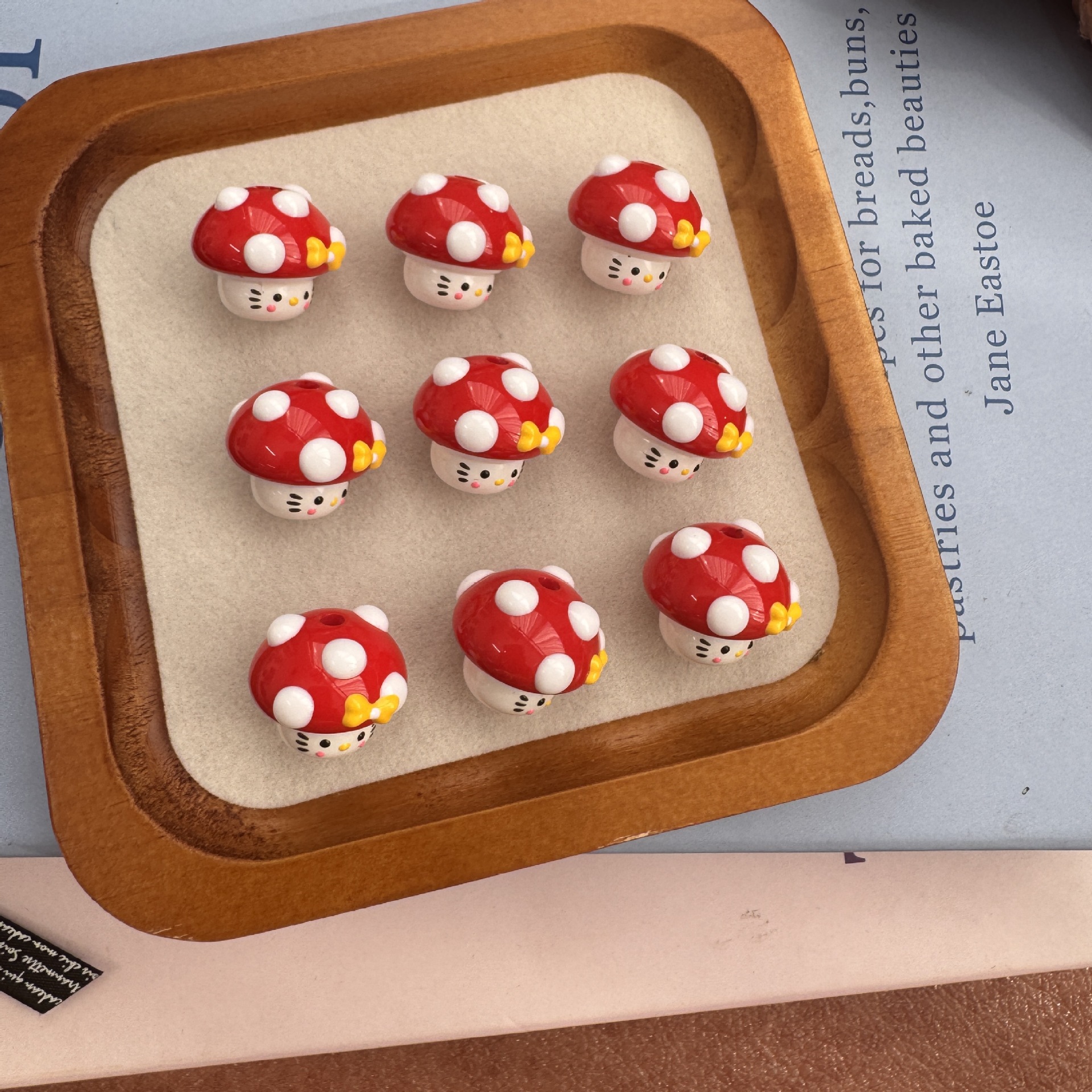爆款KT猫蘑菇手绘珠diy串珠手机链挂包链扎头绳手链