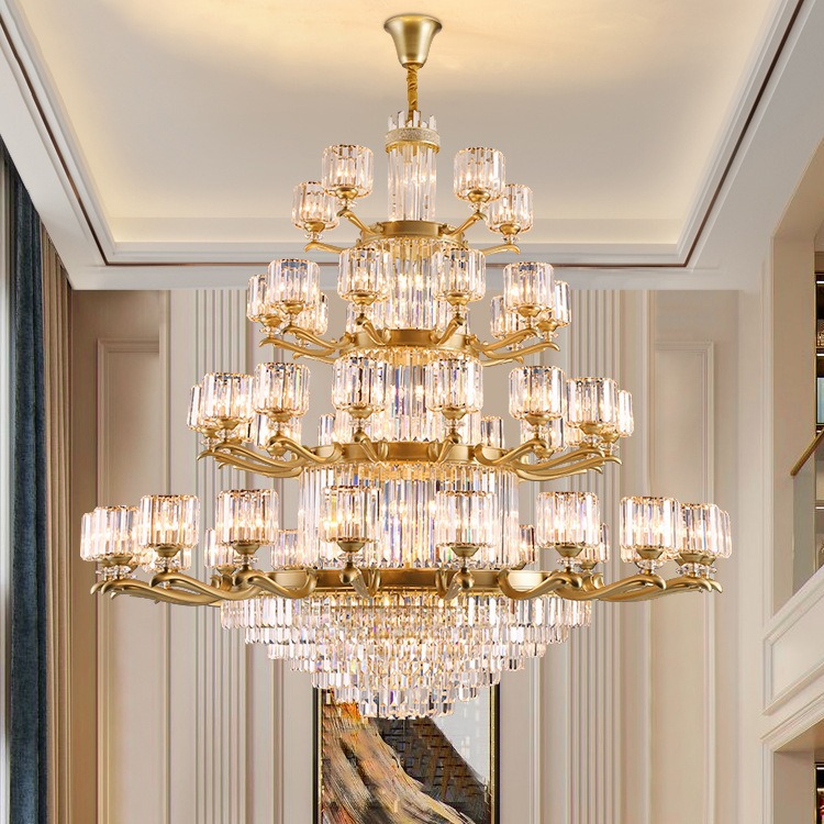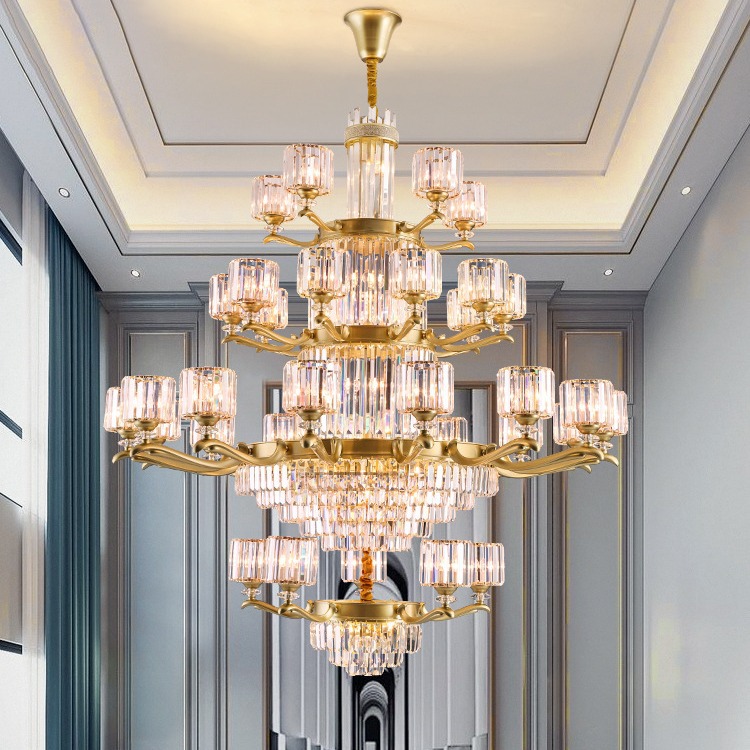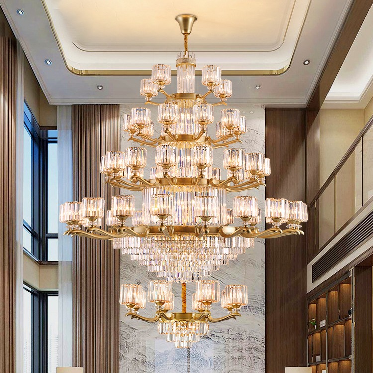 金色豪华别墅复式楼客厅水晶大吊灯高档酒店大堂包房工程灯具批发