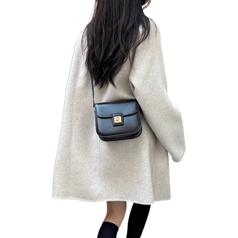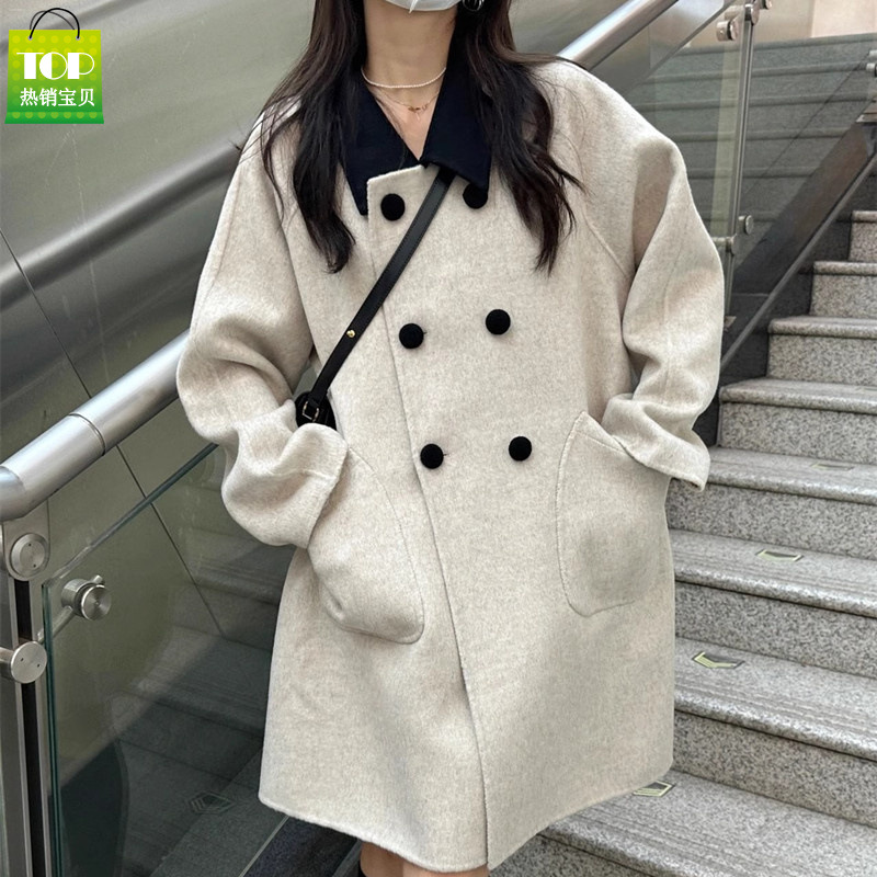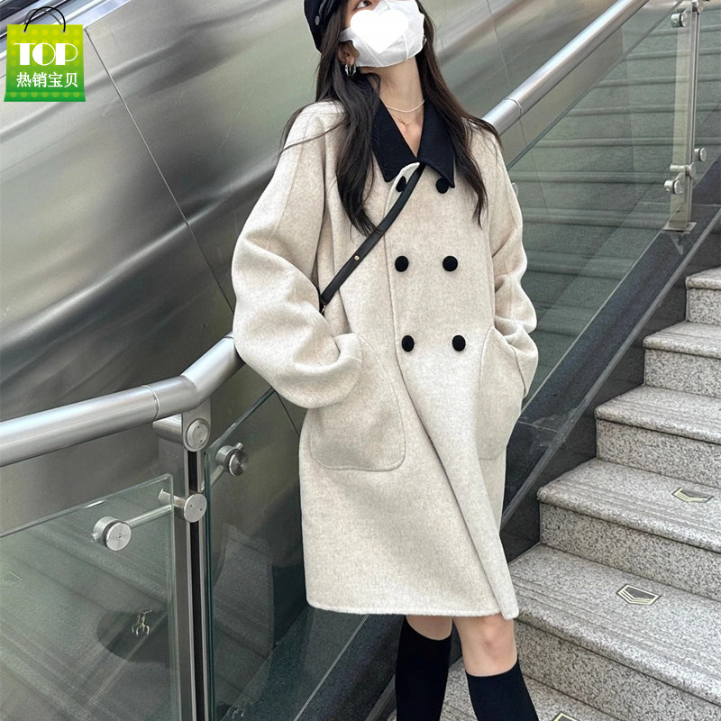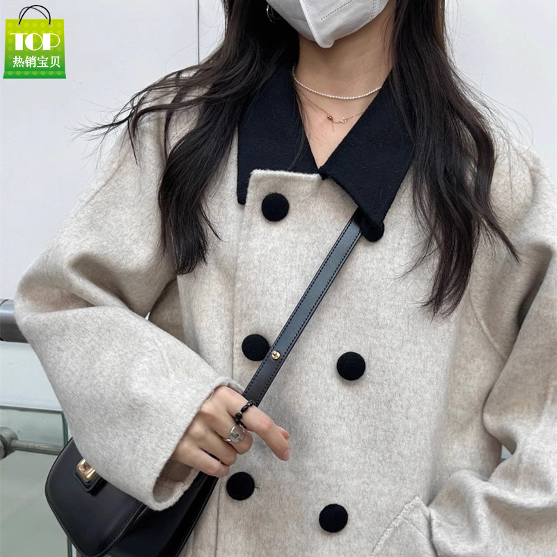 春秋复古撞色翻领妮子大衣女冬季韩系小个子短款高级感毛呢外套潮