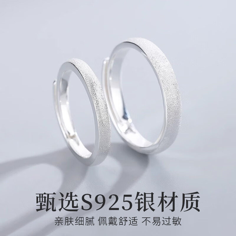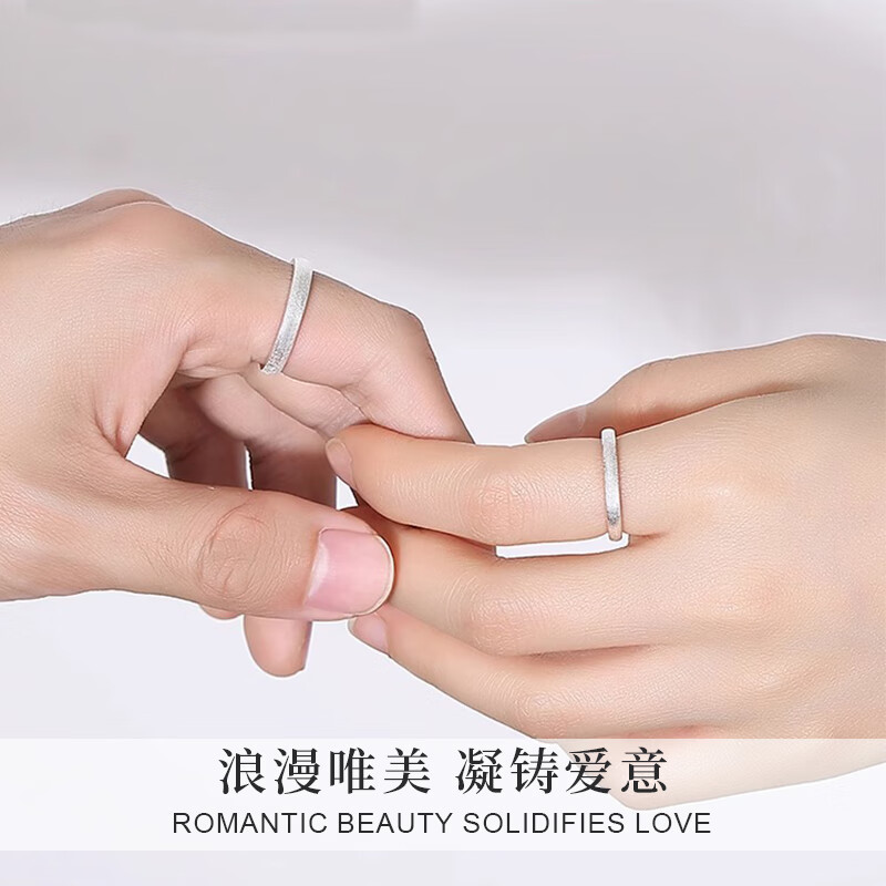 S925银古法磨砂戒指一对简约轻奢时尚对戒情人节生日礼物送男女友