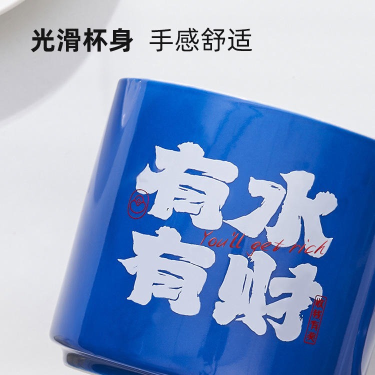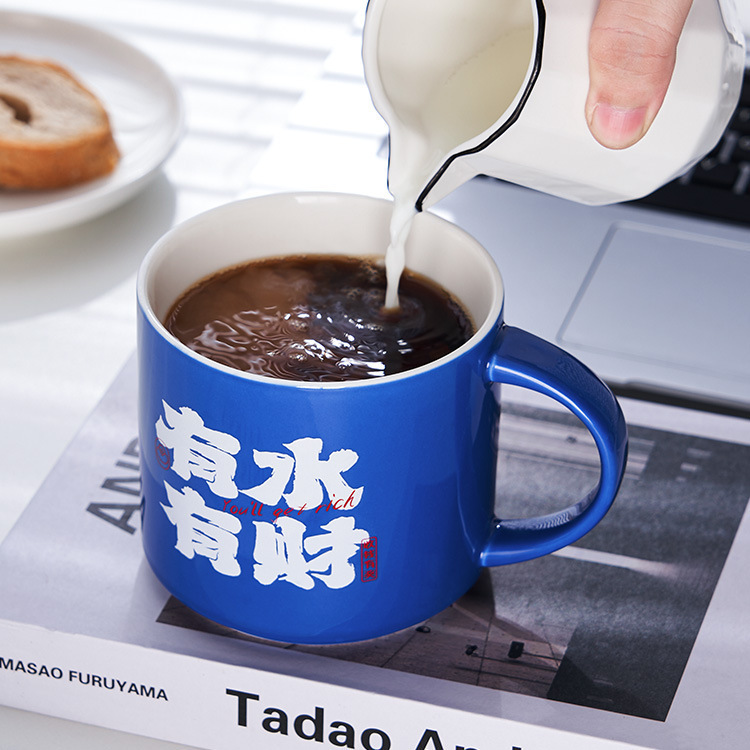 88创意陶瓷杯马克杯有水有财家用大容量早餐杯商务办公室咖啡水杯
