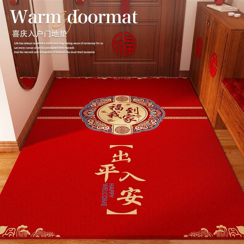 新款圈绒入户门蹭土脚踩垫防滑耐脏耐磨进门喜庆乔迁喜事装饰地垫