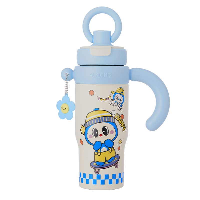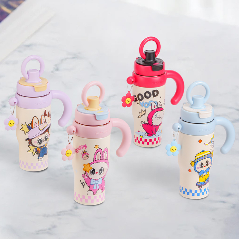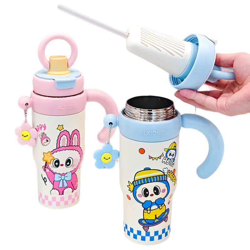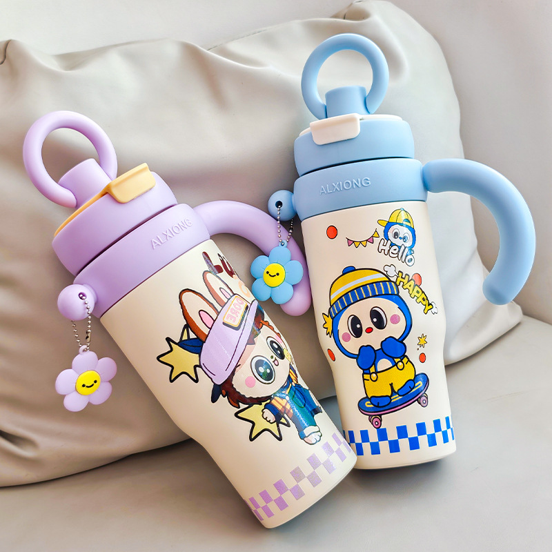 2025新款高颜值卡通提环冰霸杯800ml双饮吸管保温杯学生便携可爱