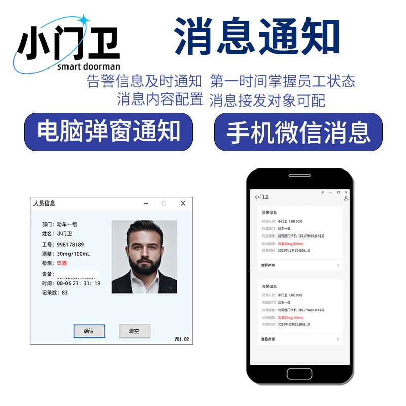 小门卫人脸识别酒精检测一体机岗前健康考勤机动态识别人脸门禁