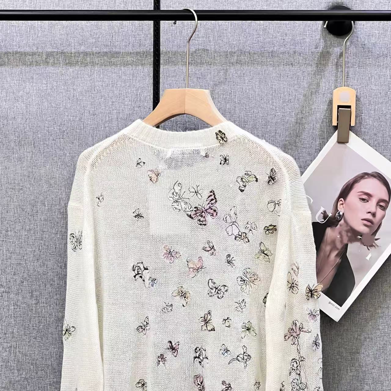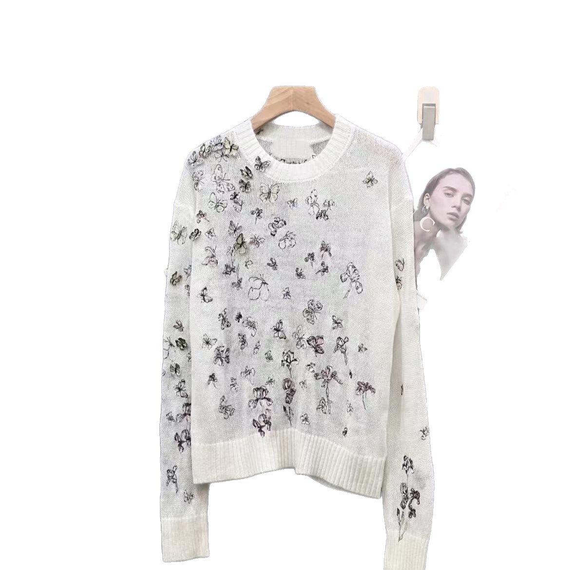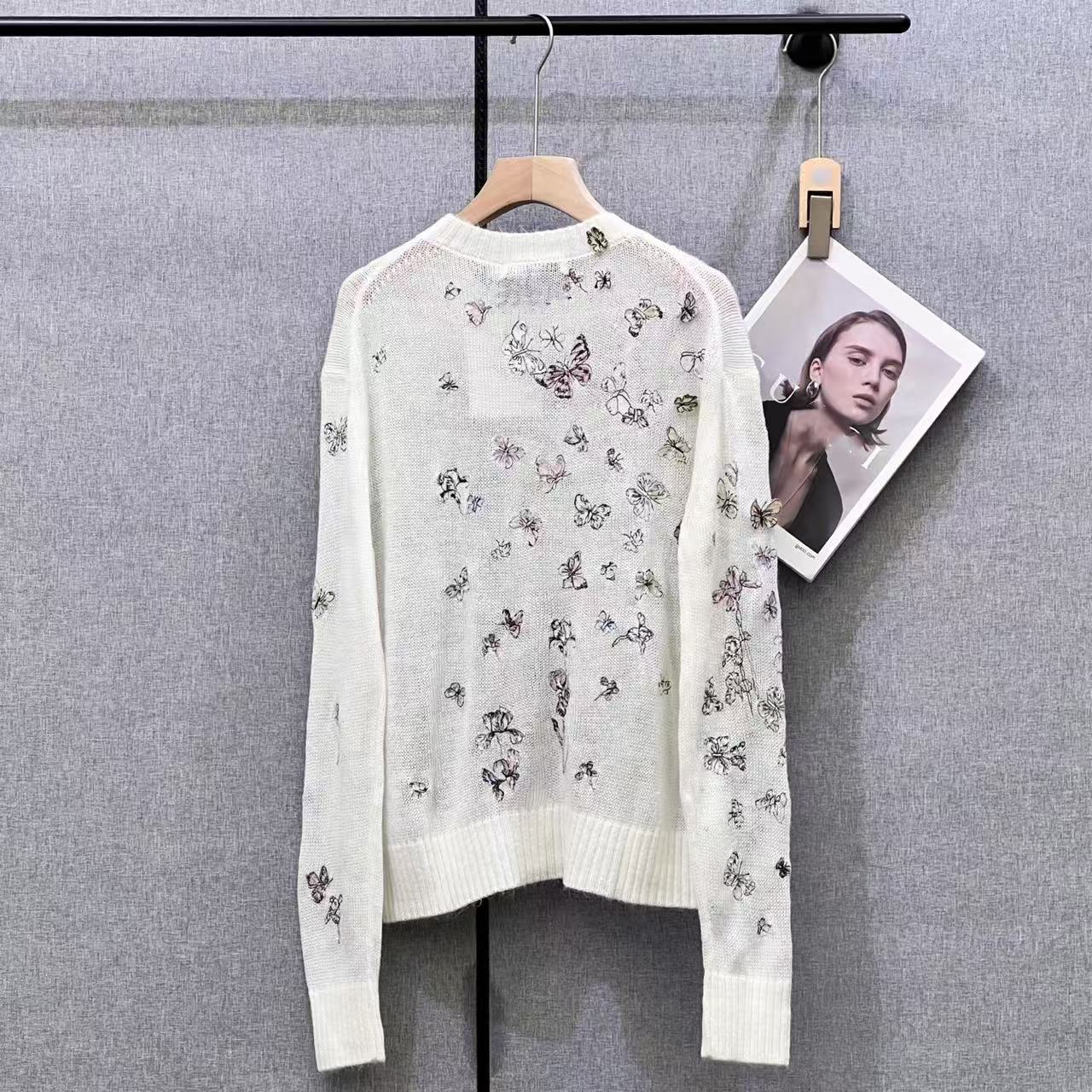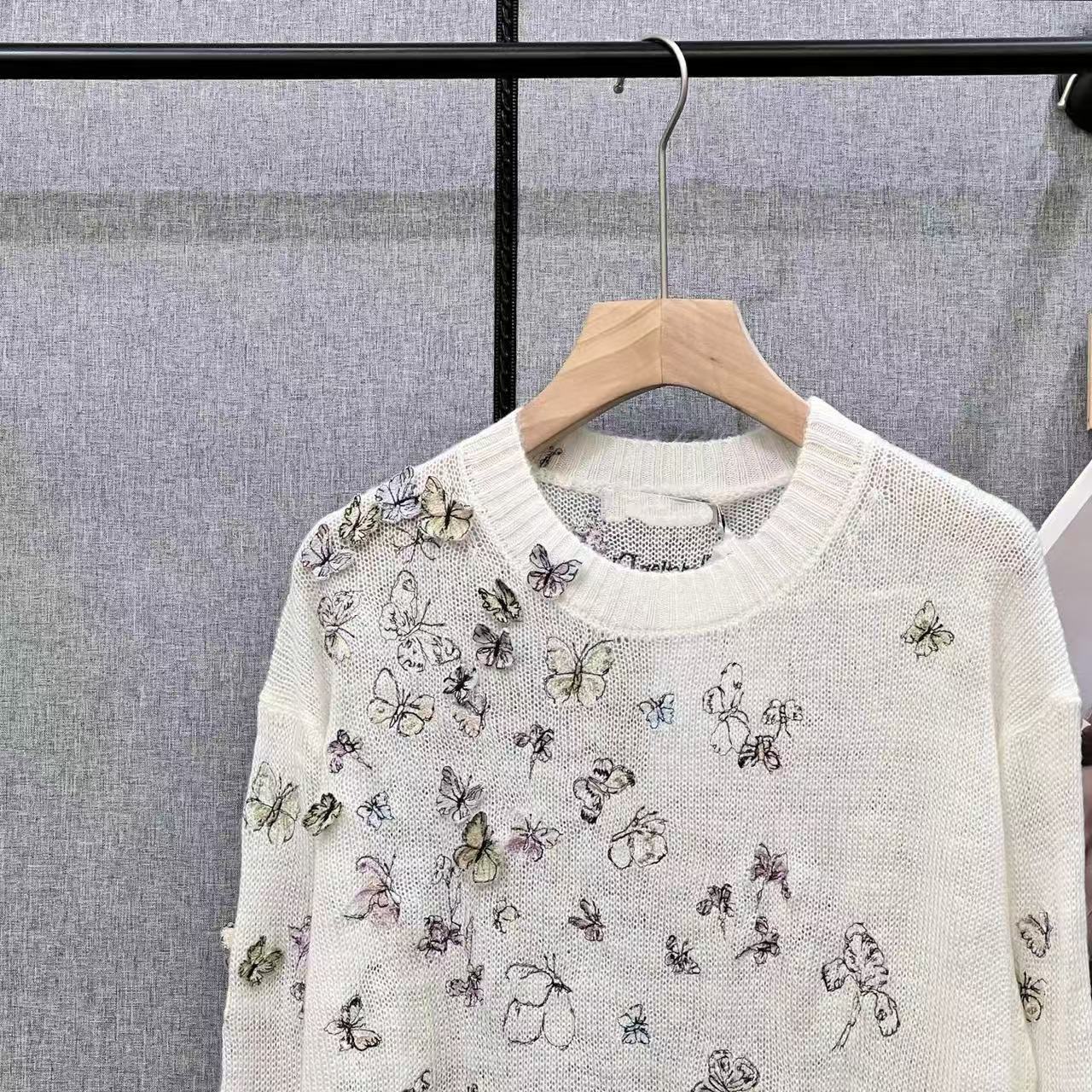南油D家25秋季新款重工蝴蝶刺绣圆领套头长袖针织衫女百搭羊毛上