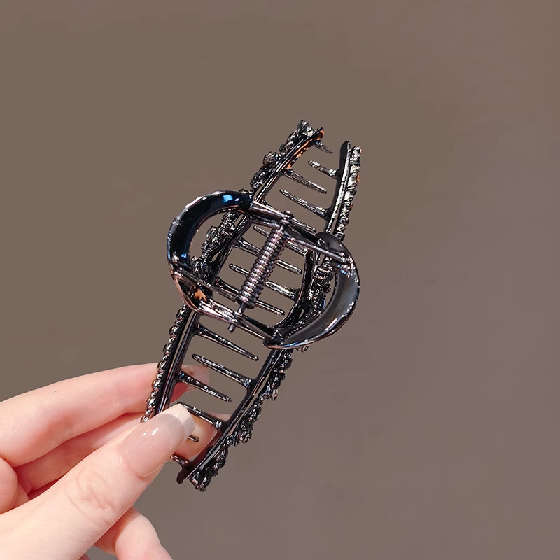 韩系轻奢水钻鲨鱼夹新款后脑勺盘发大号抓夹女发夹气质夹子