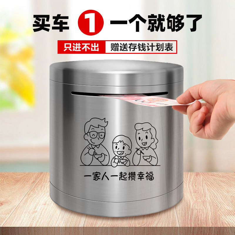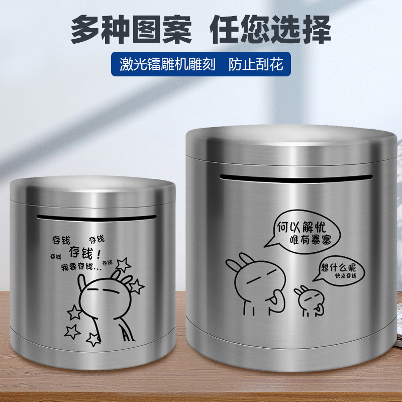 圆形存钱罐只进不出新款加厚儿童储钱罐成人网红大容量不锈钢