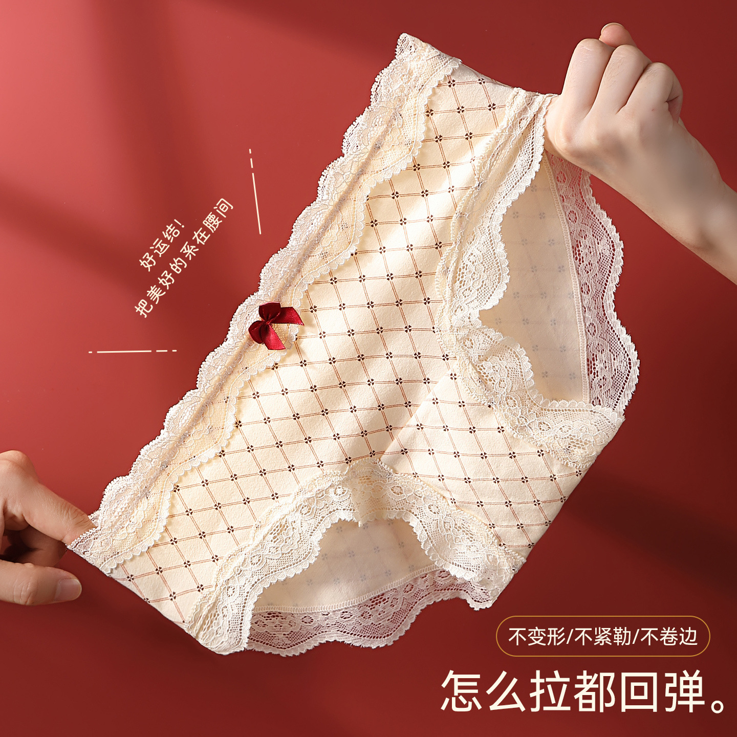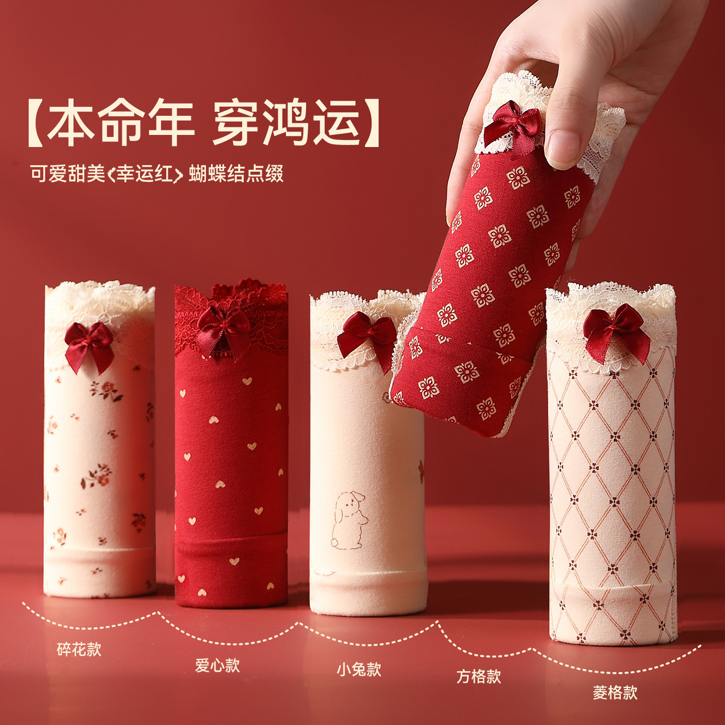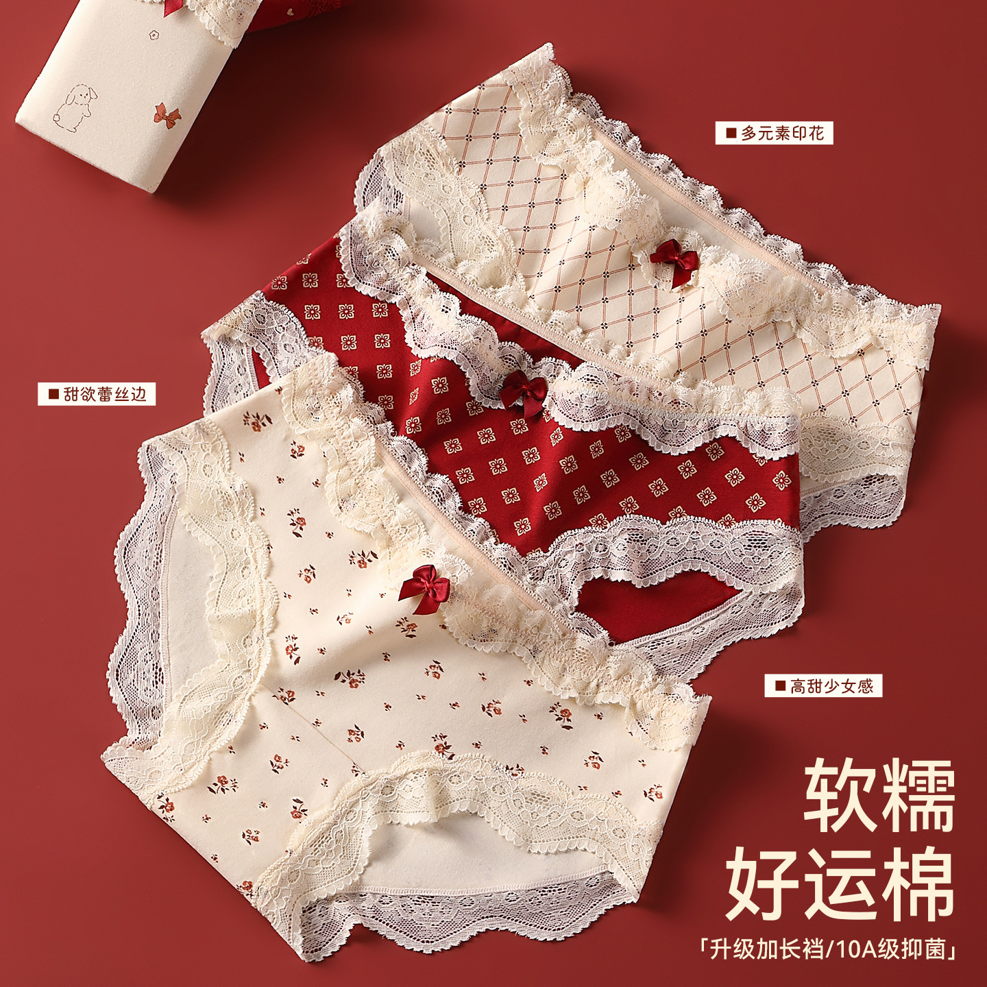 本命年红性感蝴蝶结女士内裤小清新女无痕蕾丝边少女甜美三角裤