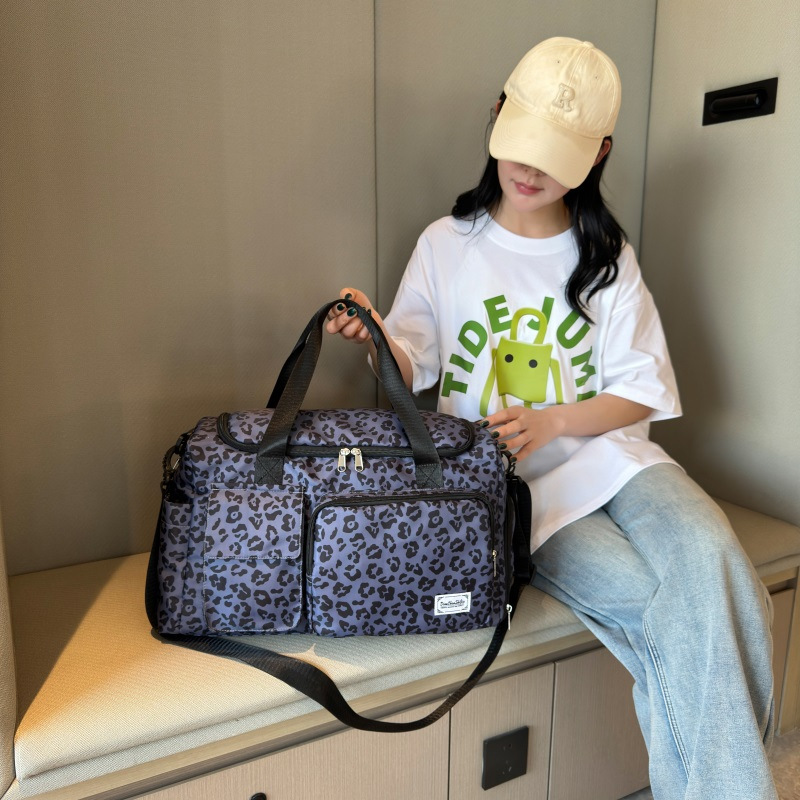 跨境豹纹大容量旅行单肩包斑马纹复古欧美短途旅行包运动健身女包