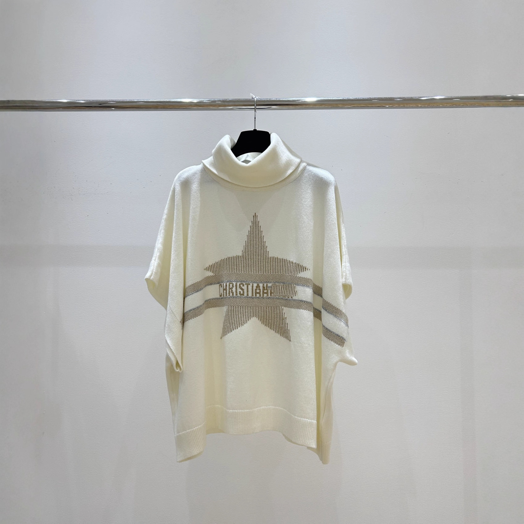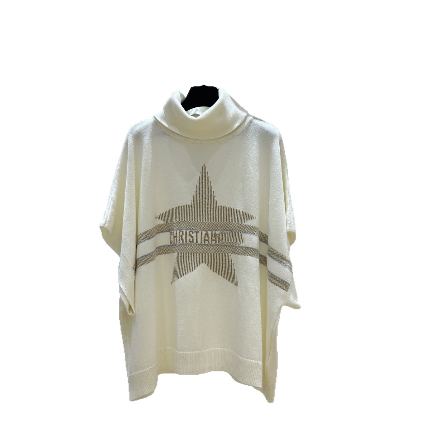 南油D家25年新款 五角星字母提花斗篷七分袖高领针织衫毛衣 舒适