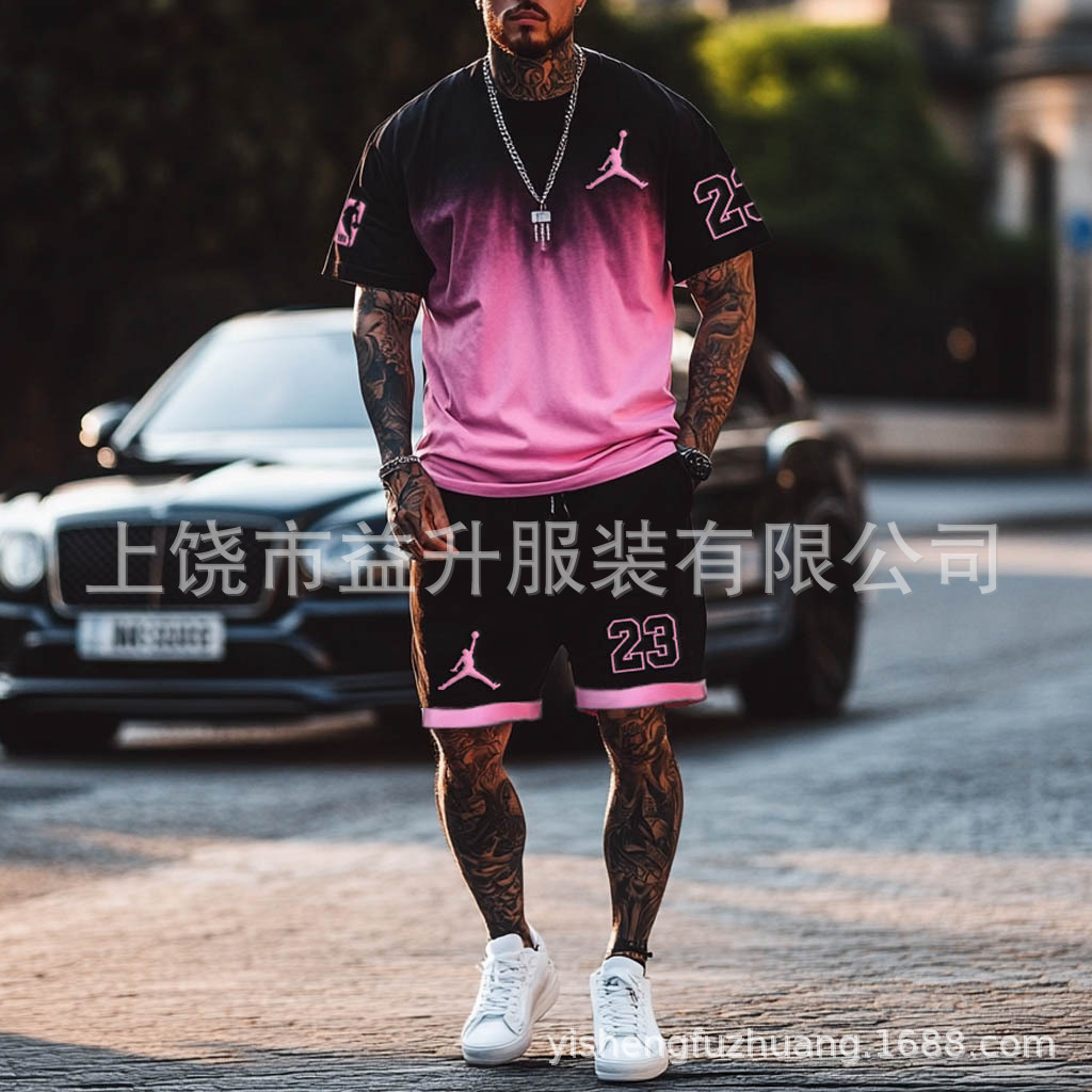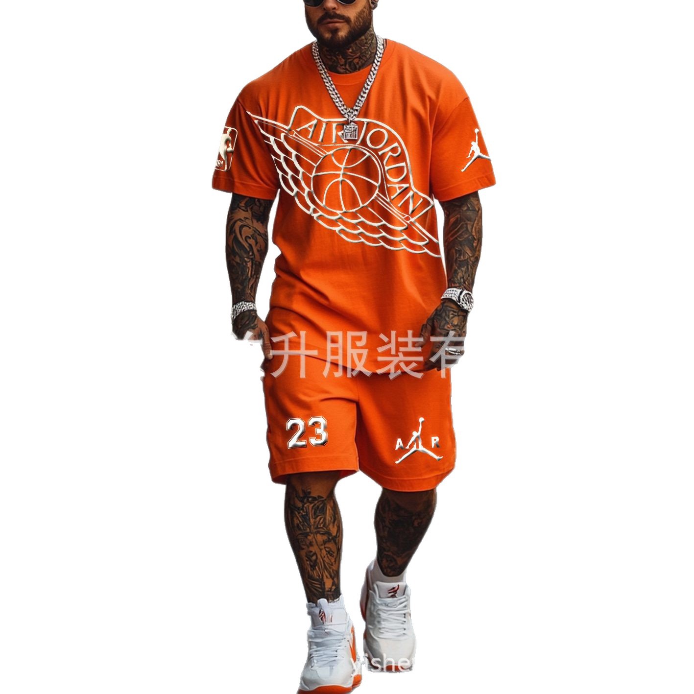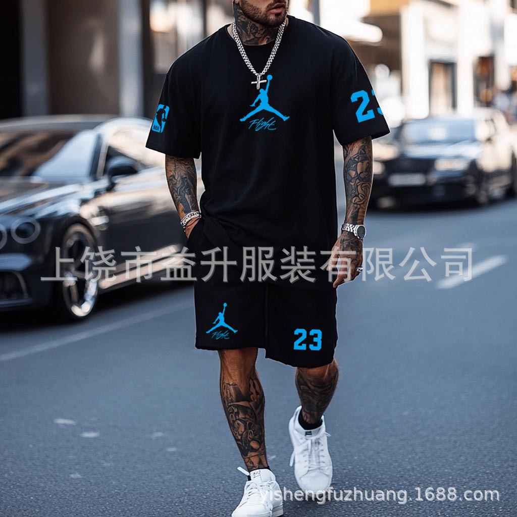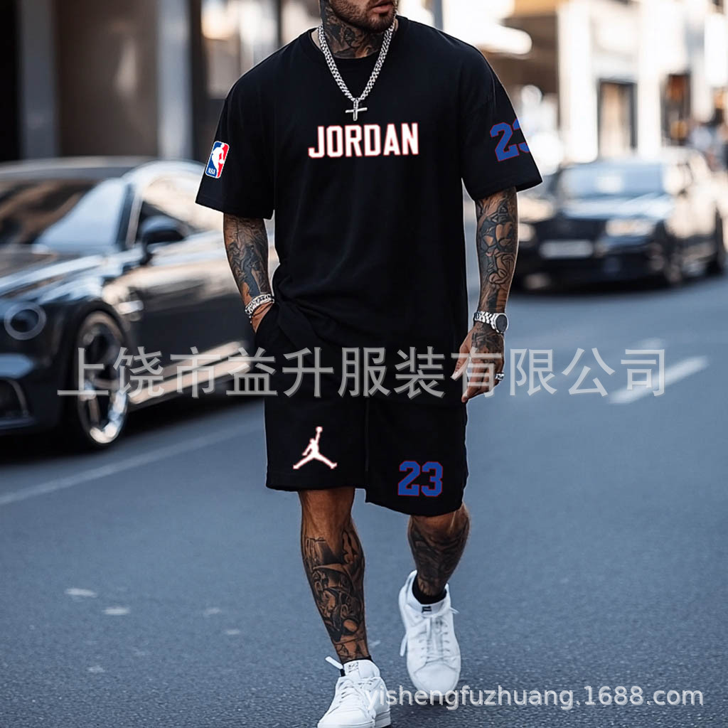 【新品优惠】欧美跨境夏季男士NBA美式风短袖短裤两件套运动百搭
