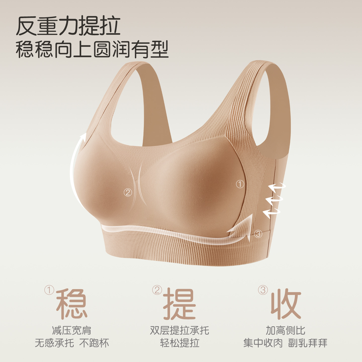 秋冬款大码无痕粉底液隐形内衣女士文胸聚拢无钢圈固定杯垫美背心
