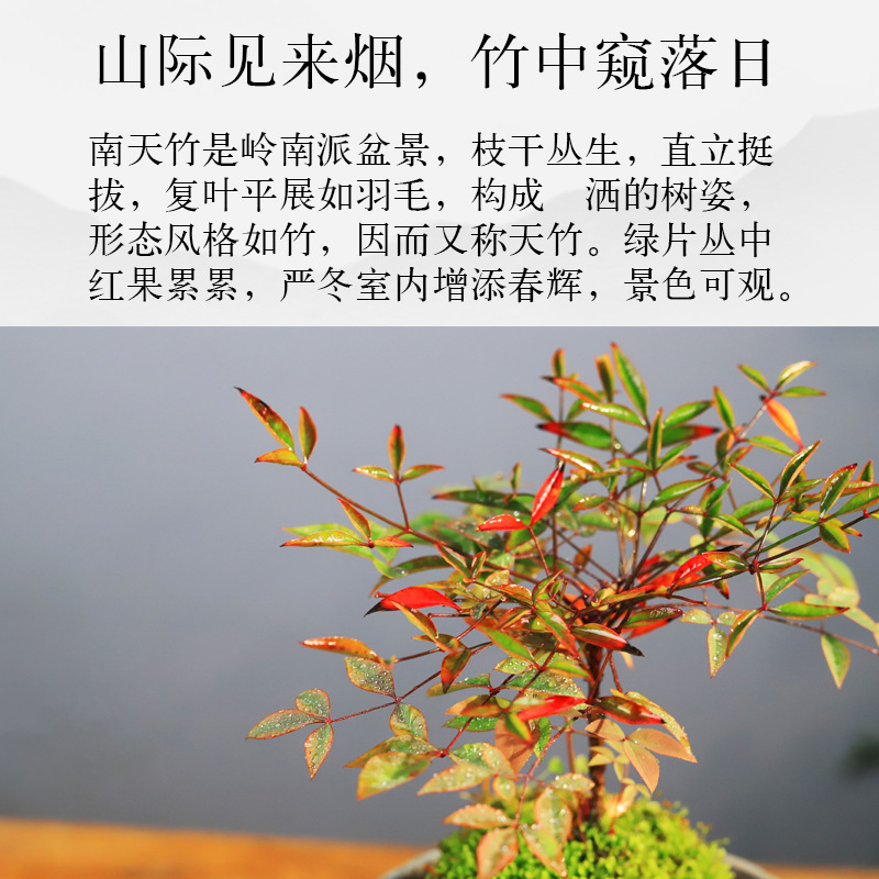 | 规格 | 低杆南天竹(仿青石水波纹碗) | 规格 | 高杆南天竹(不含盆) |
