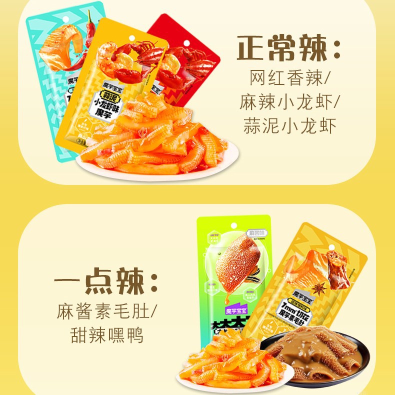| 包装规格 | 蒜泥小龙虾口味10克-1袋 | 包装规格 | 魔芋贡菜口味10克-1袋 |