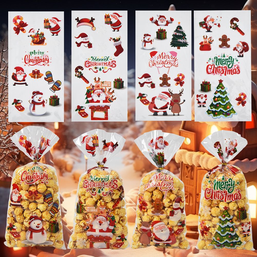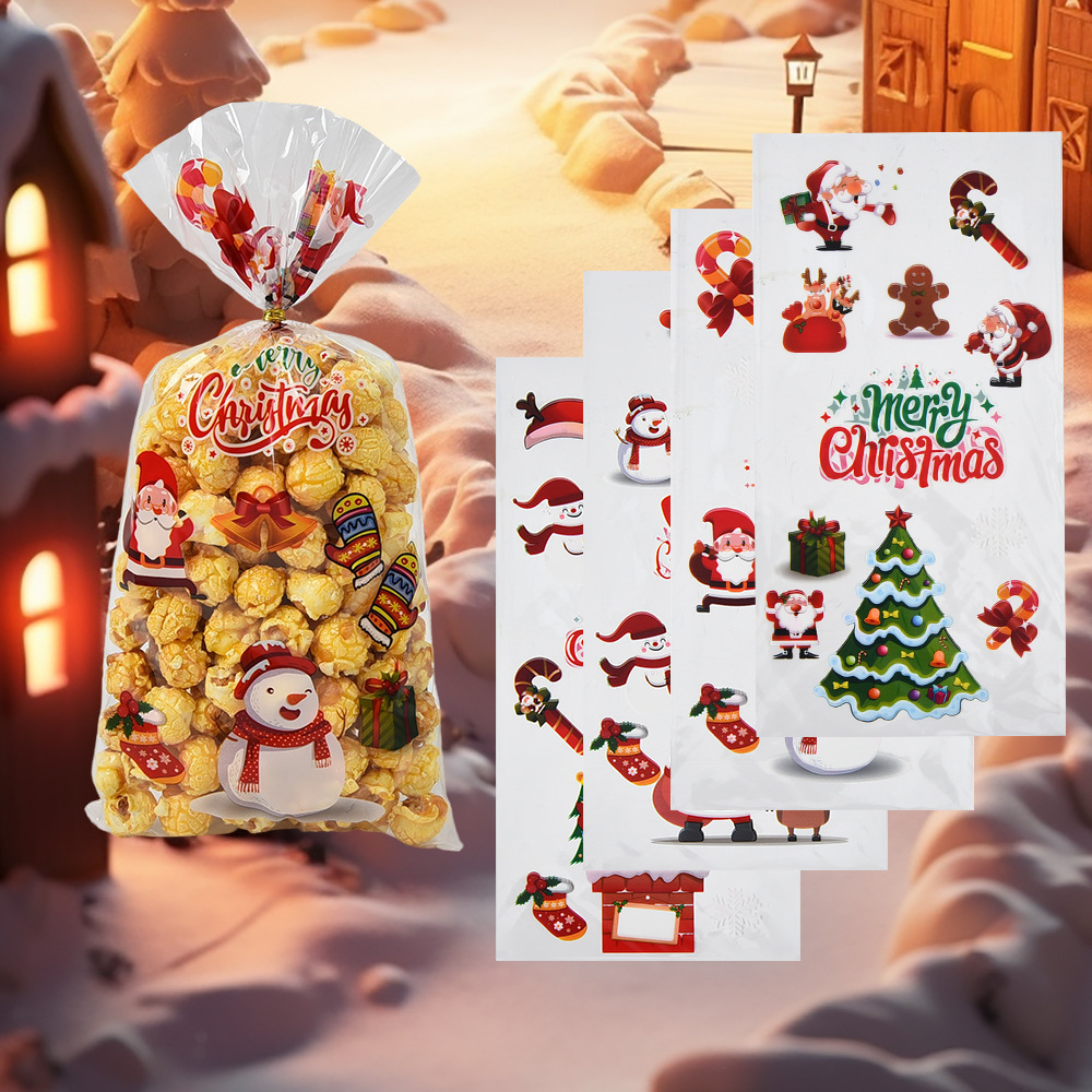 圣诞系列OPP平口袋透明塑料包装袋糖果饼干印花袋子100个装分装