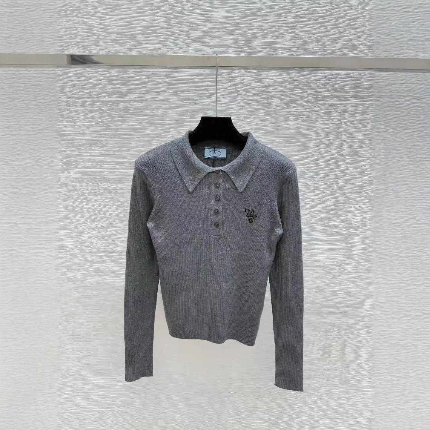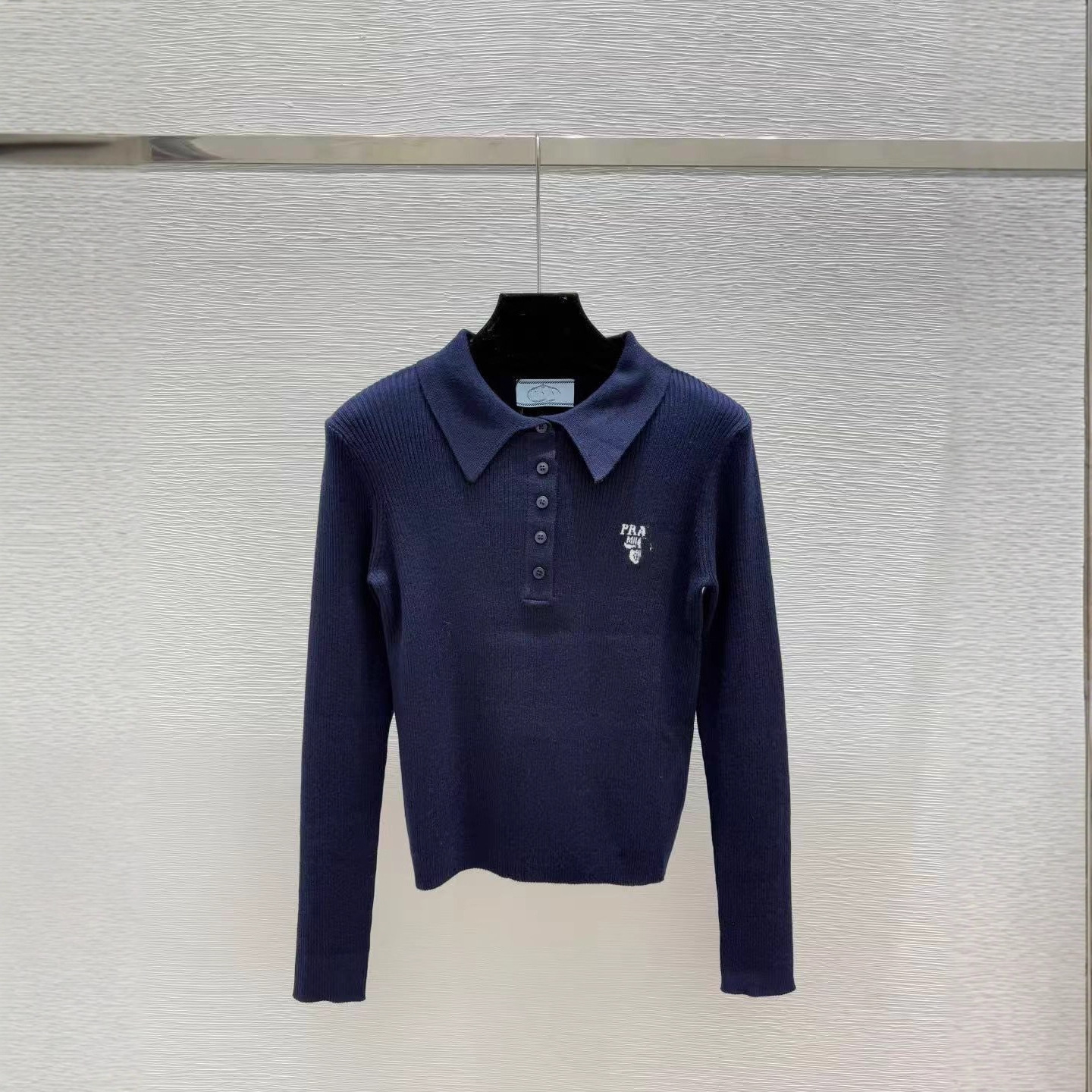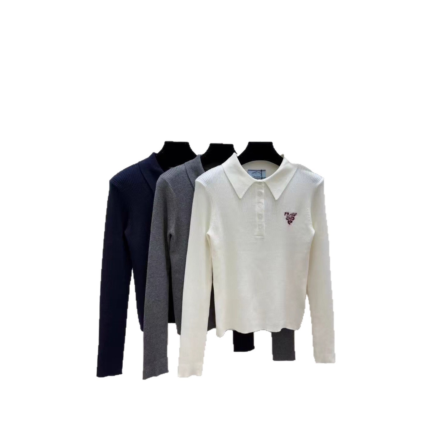 南油P家高品质POLO翻领长袖针织衫女2025秋冬新款复古辣妹修身显