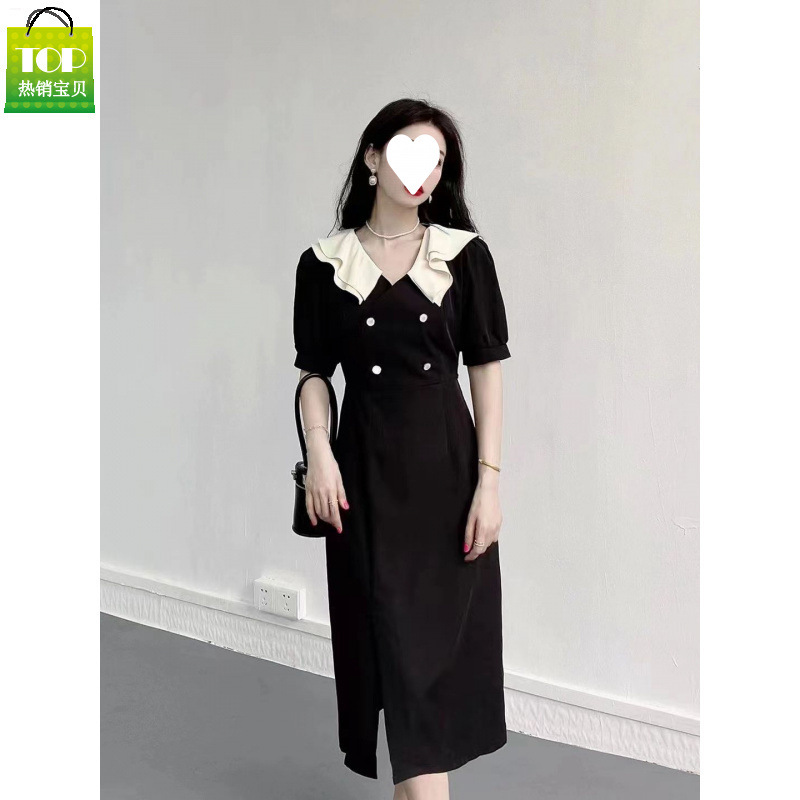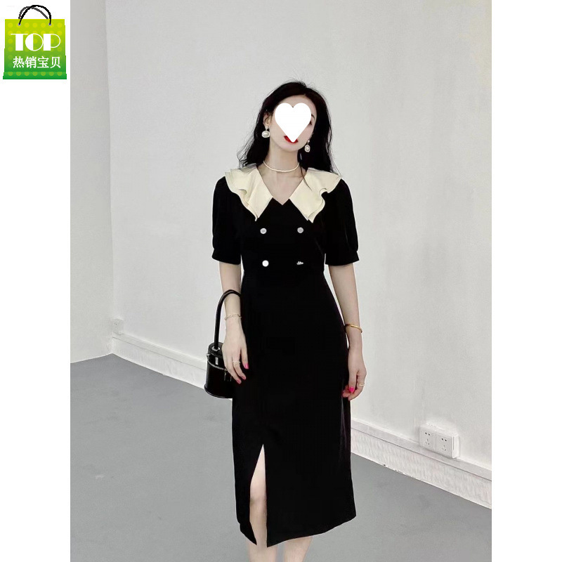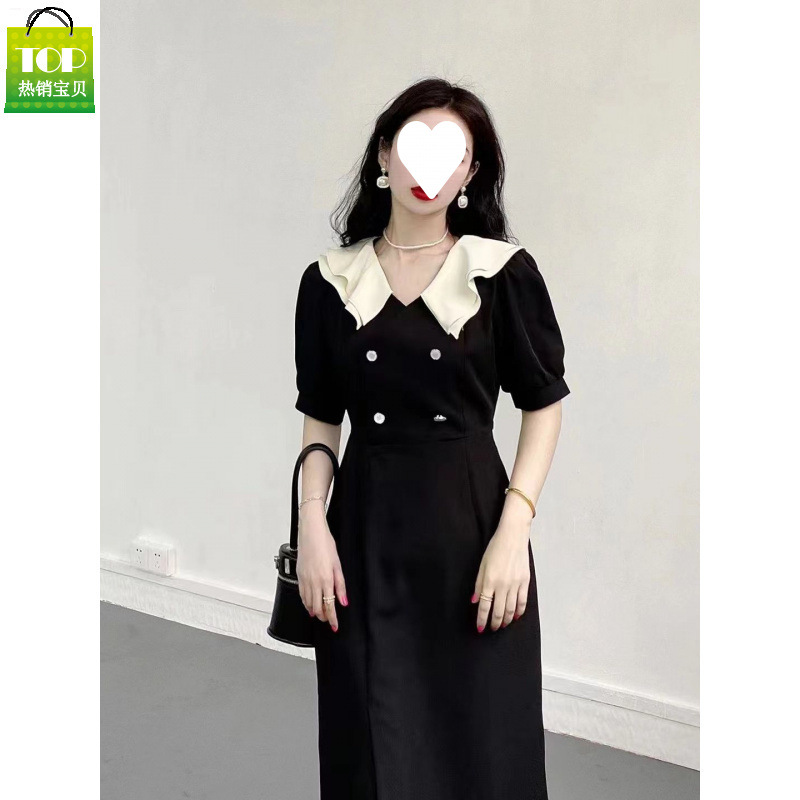 法式大码胖mm新款夏季修身收腰赫本风小黑裙高级感超仙气质连衣裙