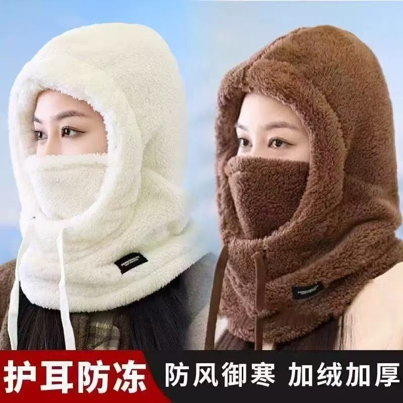 跨境帽子冬季男女保暖帽子防风雪帽围脖口罩连体毛绒帽棉绒骑行帽