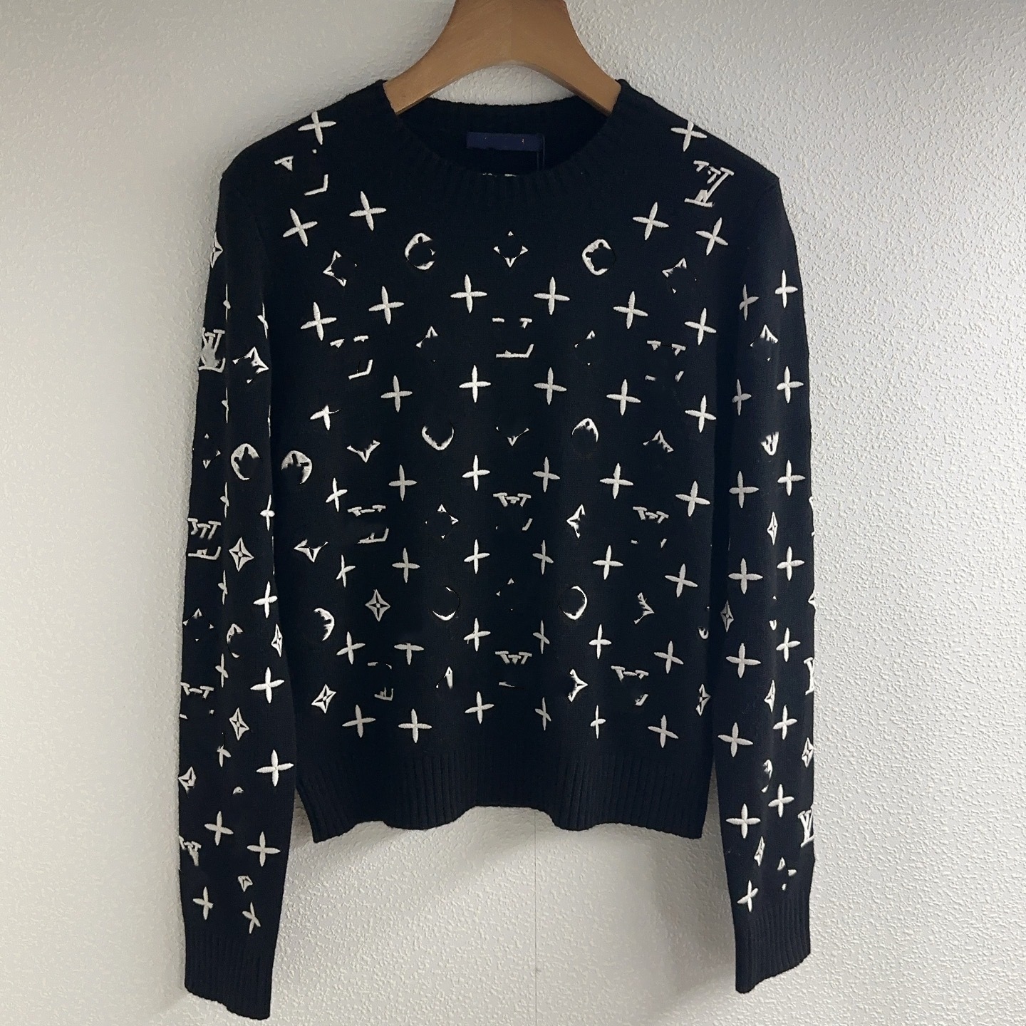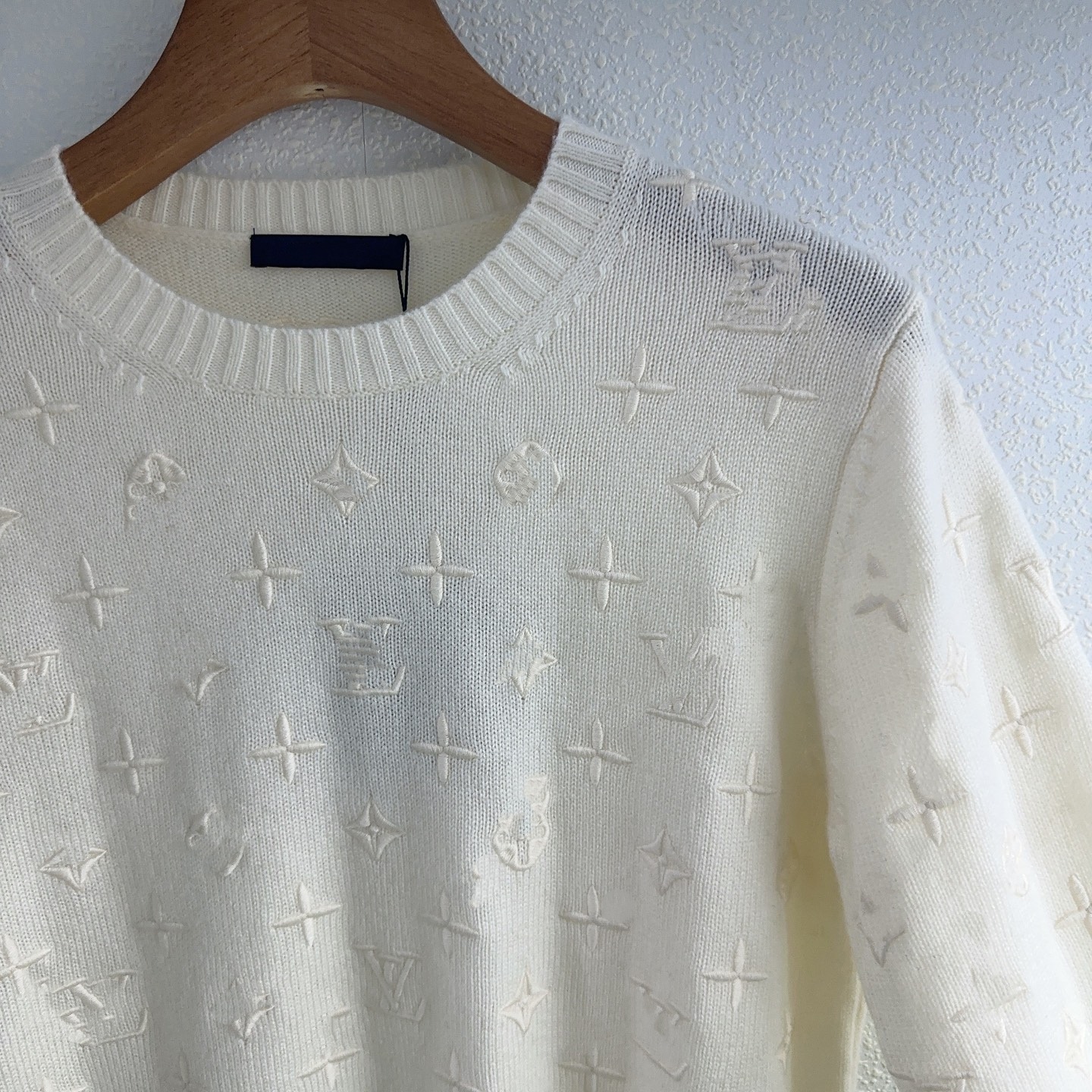 深圳南油货~顶级羊绒版本L家全身老花撞色logo重工刺绣套头针织衫
