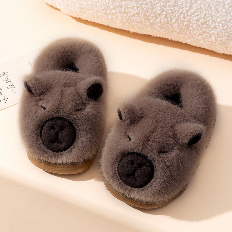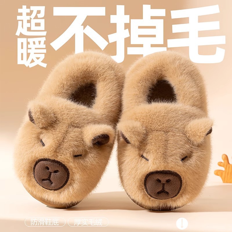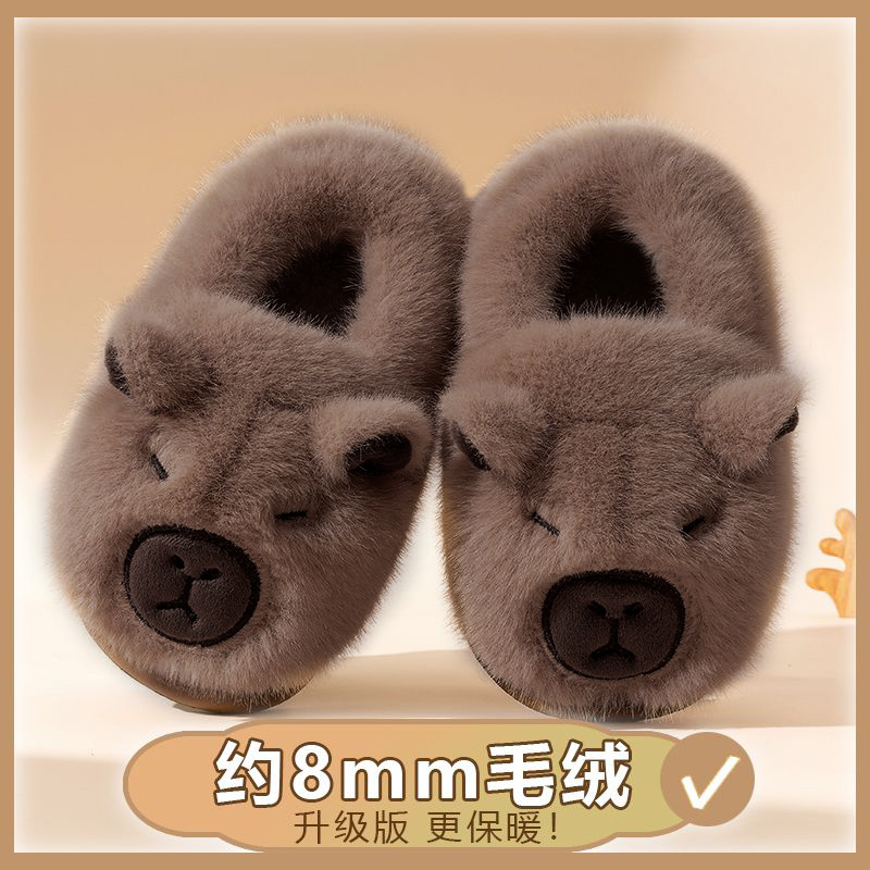 儿童包跟棉拖鞋卡皮巴拉男童女童毛毛棉鞋秋冬季宝宝2024新款保暖