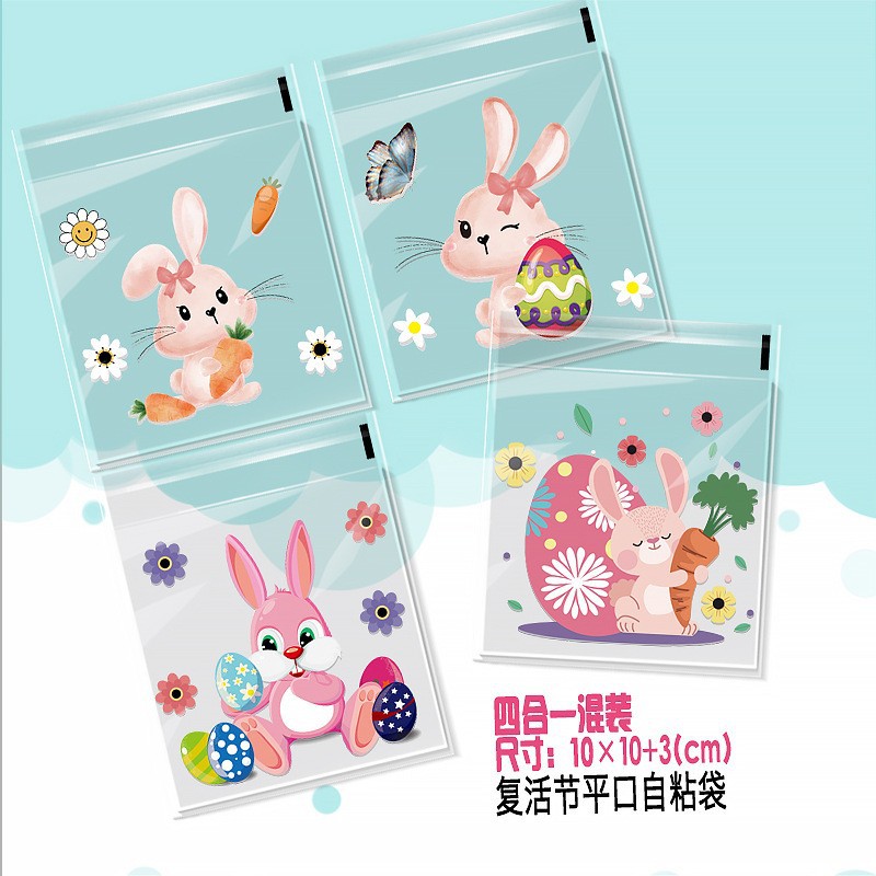 复活节OPP自黏袋袋兔子彩蛋图案糖果礼品包装袋节日饼干塑料袋