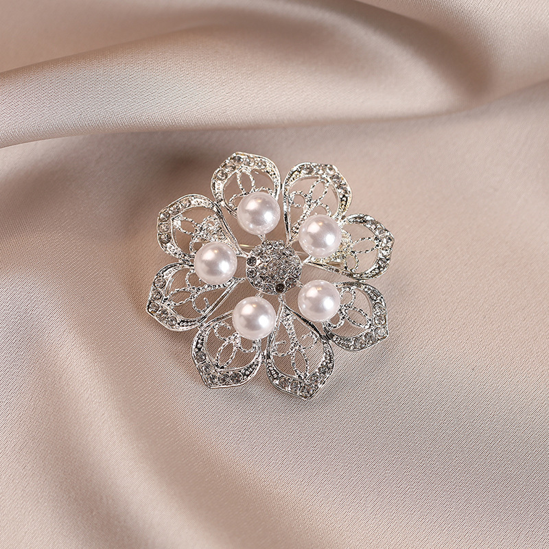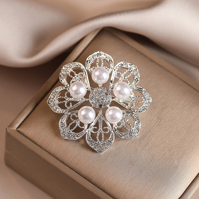 珍珠镶钻花朵胸针女高级感小众轻奢别针大衣西装配饰防走光扣胸花