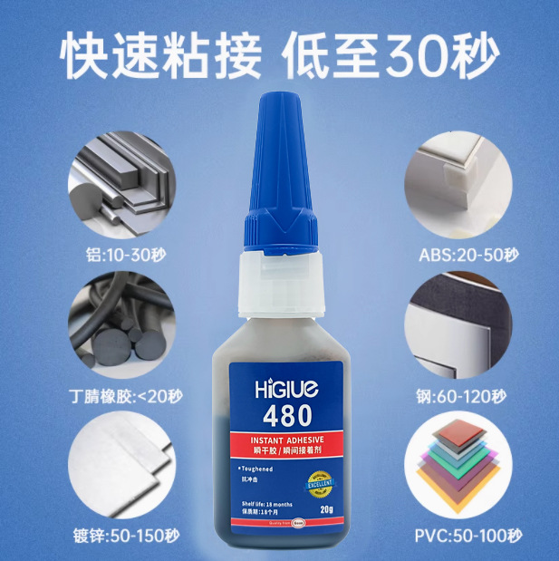 轮胎胶水专用480黑胶橡胶塑料强力快干胶耐冲击增韧性瞬干胶粘接