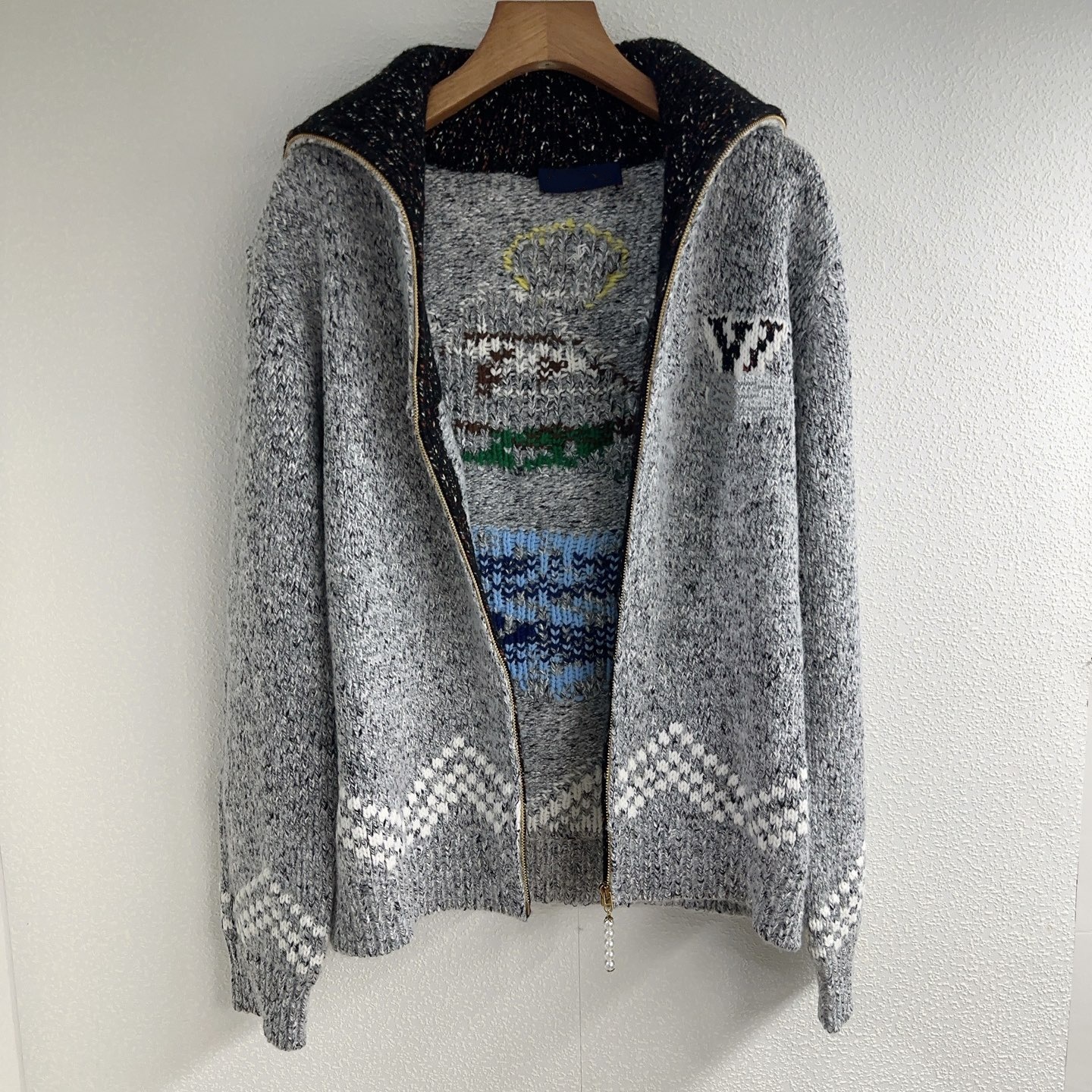 深圳南油货~顶~级版本 L家 男女同款撞色图案提花刺绣针织开衫外