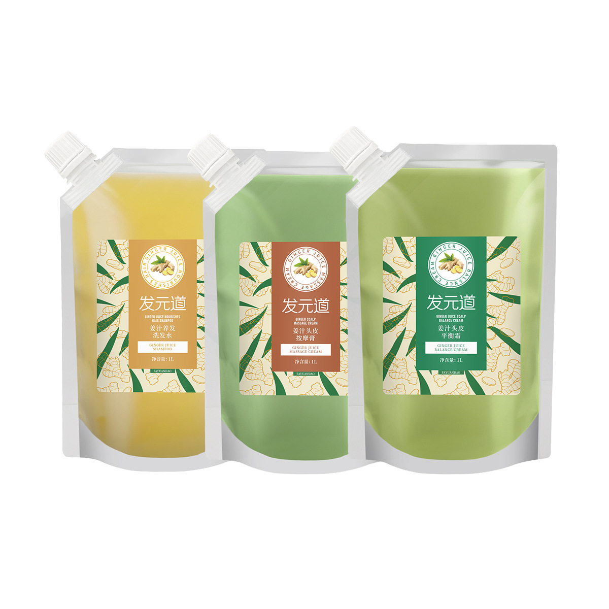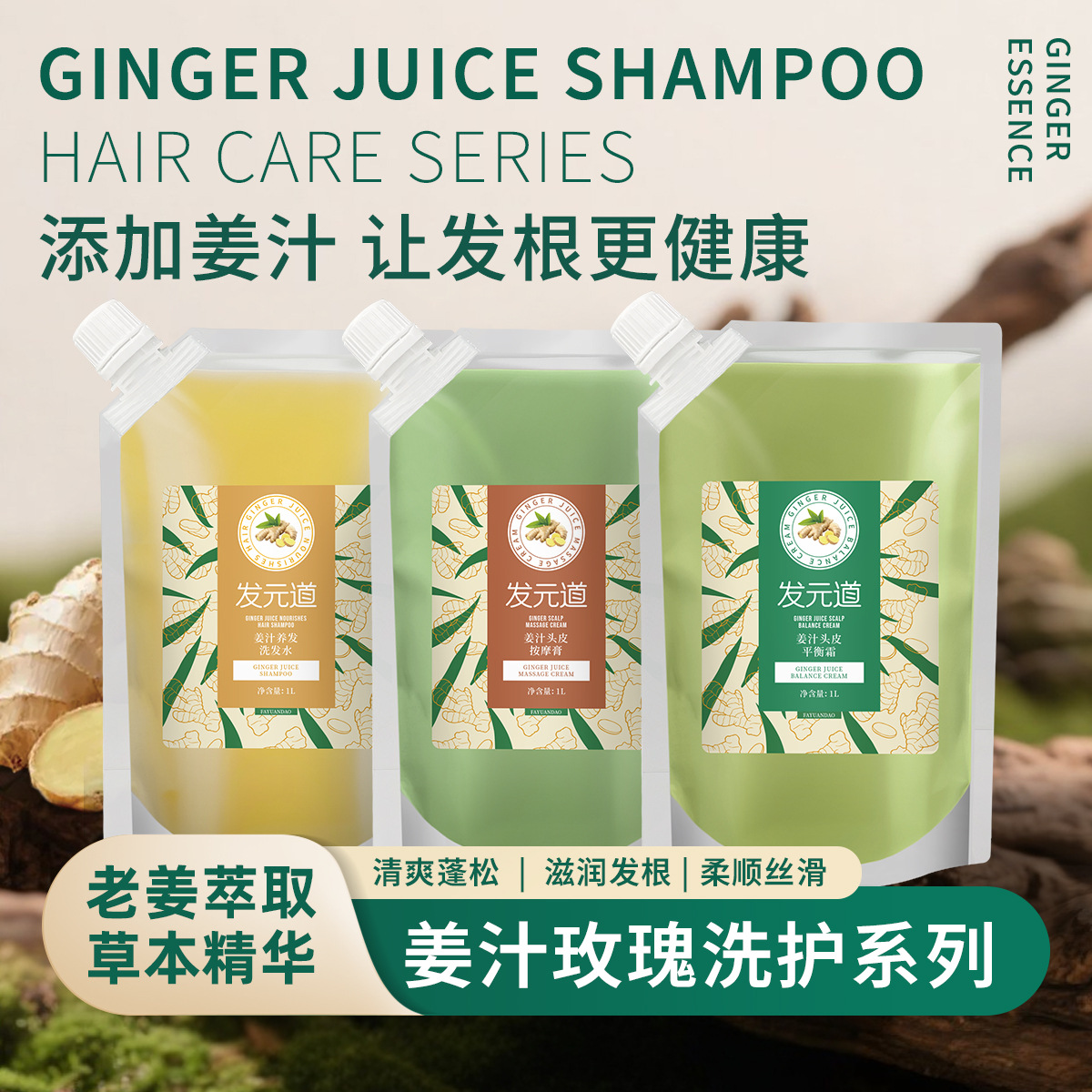 发元道生姜洗发水大容量护发素套装1L袋装头疗养发馆老姜王洗发水