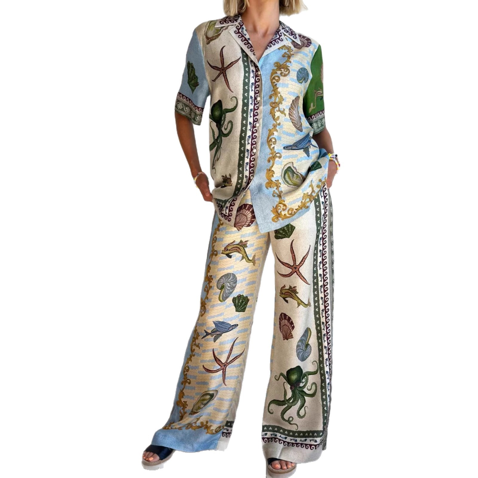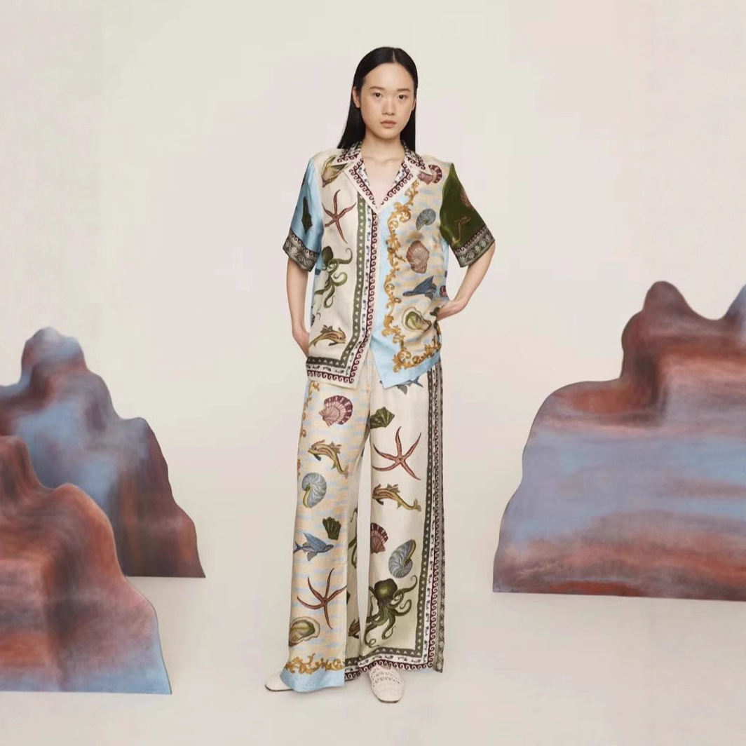 欧美跨境2025新亚马逊速卖通休闲时尚百搭亚麻衬衫西服领衬衣套装