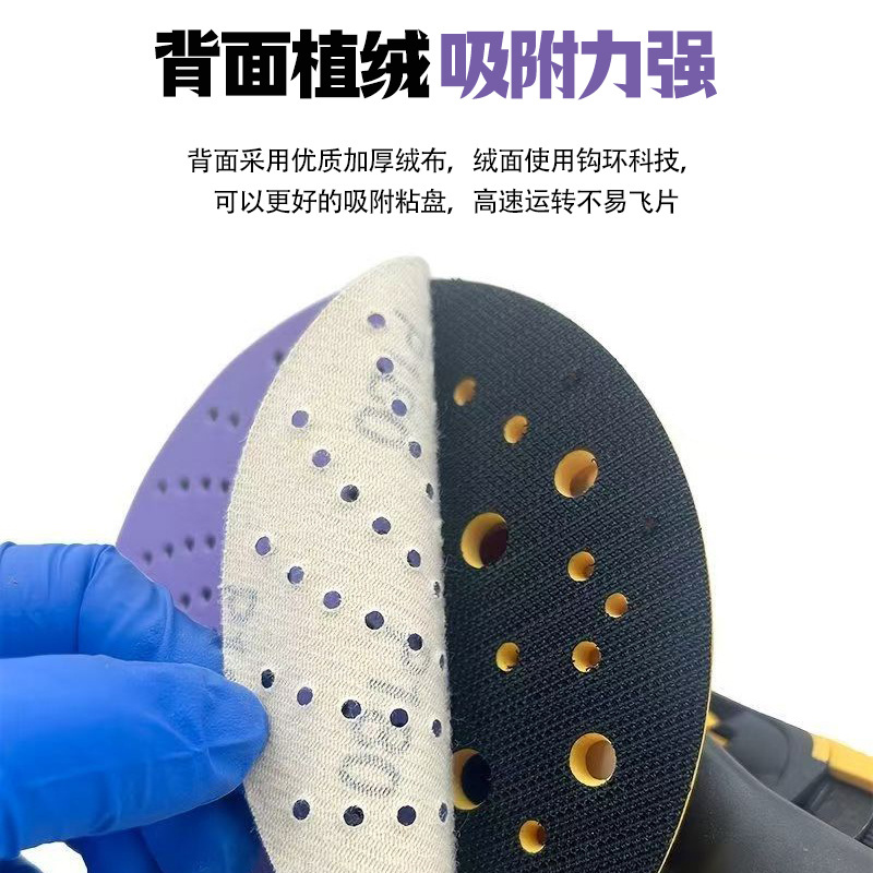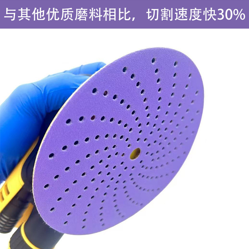 跨境外贸紫旋风砂纸六寸旋风孔干磨砂纸圆盘植绒多孔陶瓷砂纸片