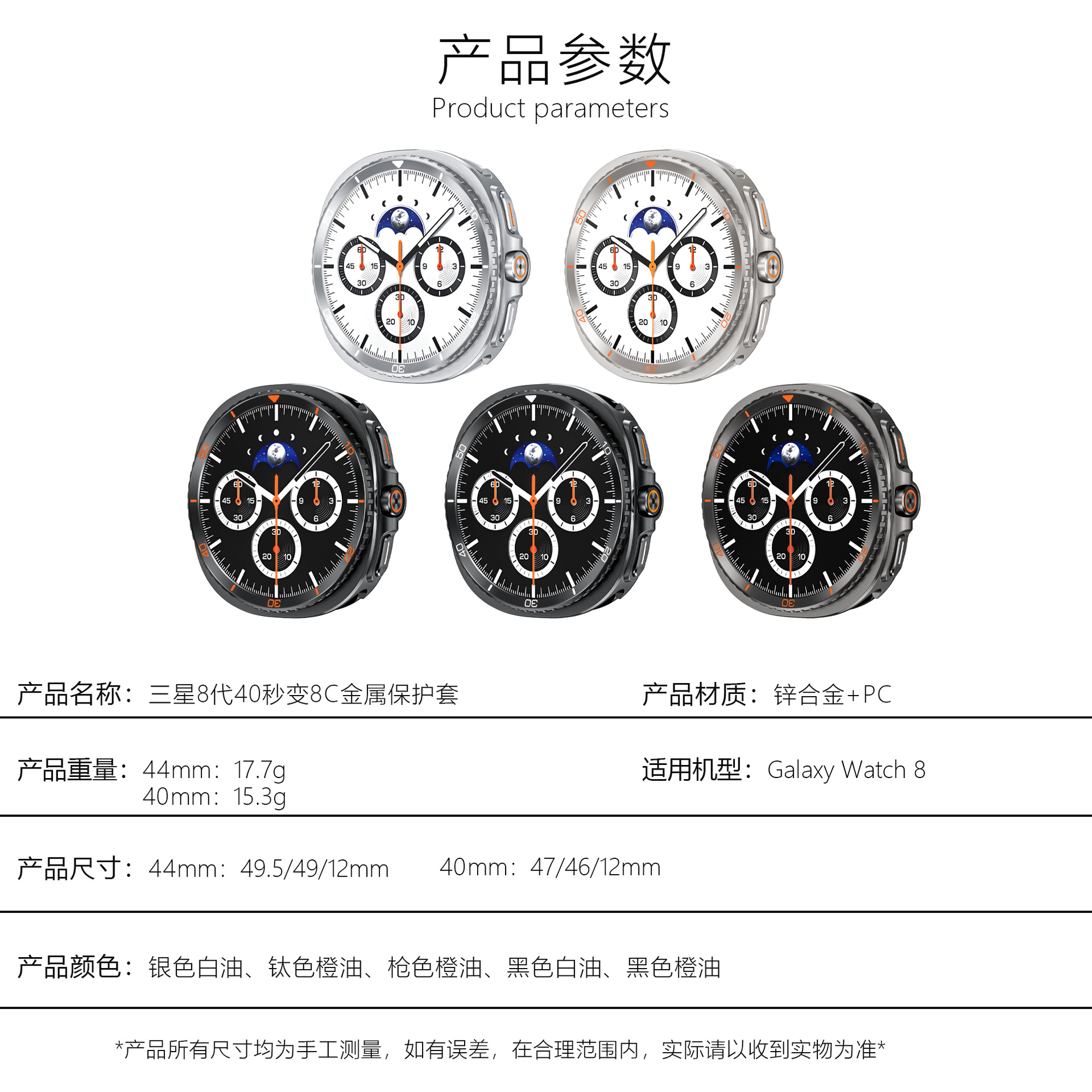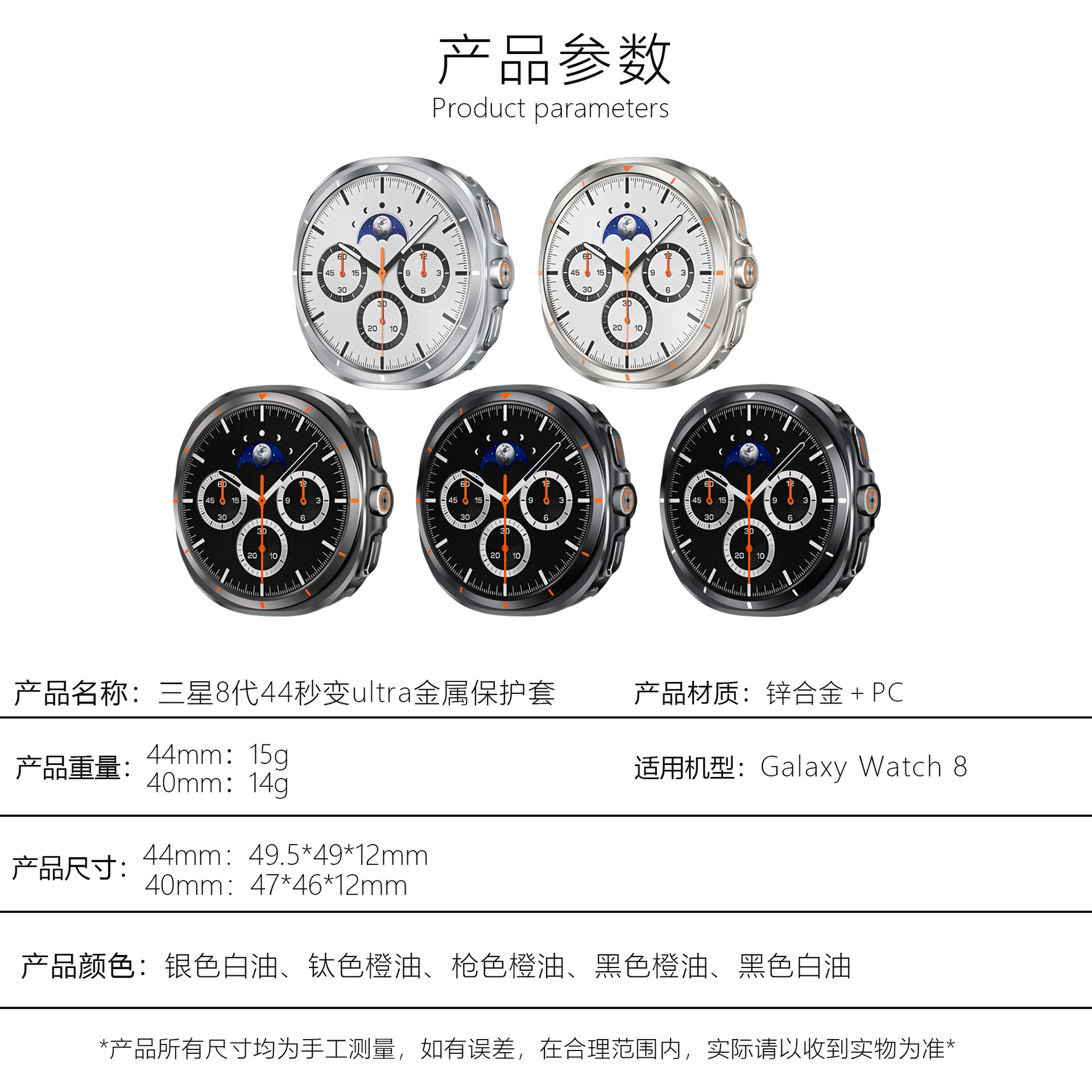 适用三星Galaxy watch 8代金属壳40/44mm秒变改装壳锌合金保护套