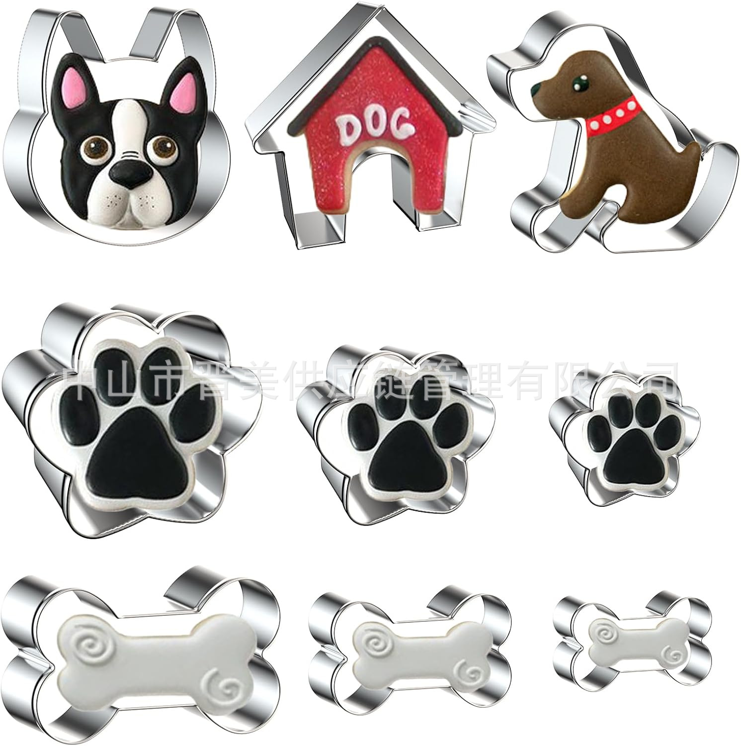 9件套装小狗造型饼干模具狗爪狗屋派对不锈钢按压式蛋糕工具跨境