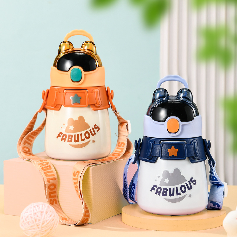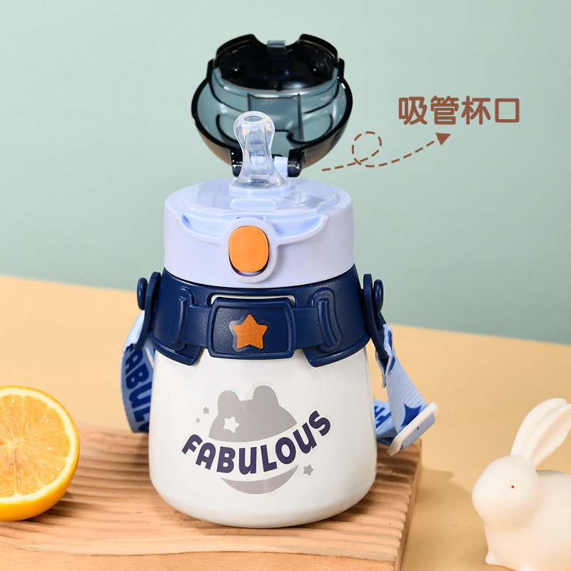 特工兔儿童保温杯304不锈钢吸管水杯卡通学生保温壶便携防摔杯子
