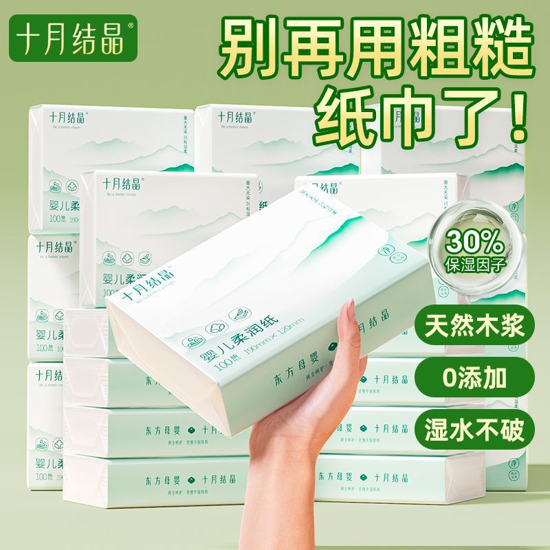 十月结晶婴儿柔润纸巾新生宝宝手口屁保湿云柔巾100抽30包