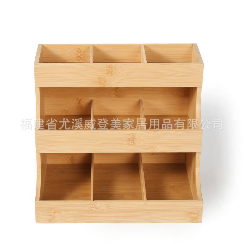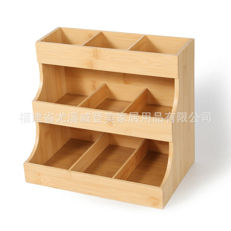 竹制隔间收纳架 办公室茶水间分层储物架 咖啡茶包饮品置物整理架