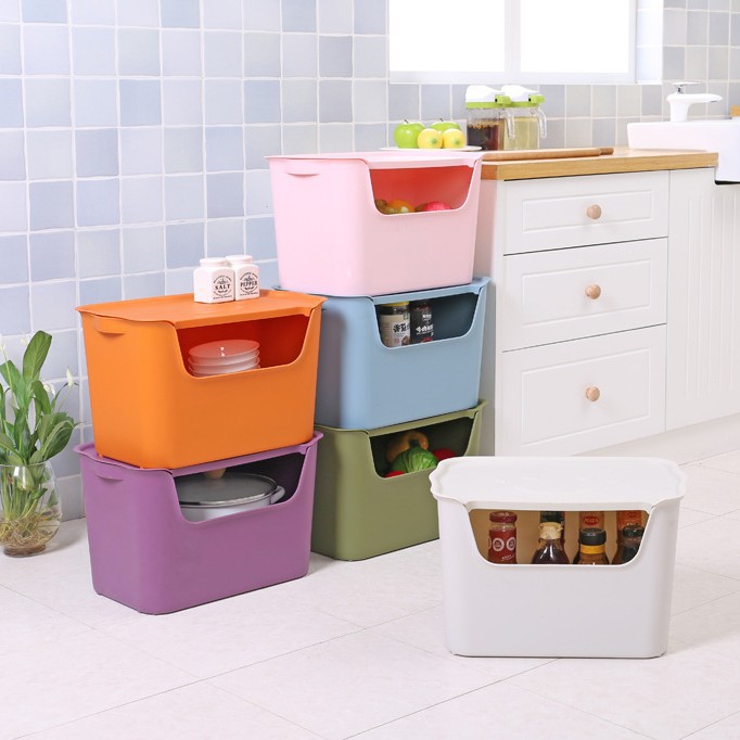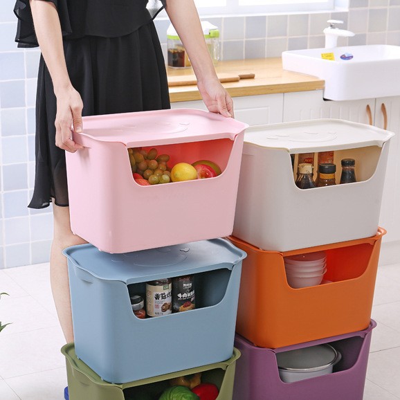 加厚 可叠加收纳箱 家用零食玩具塑料储物盒杂物整理筐带盖脏衣篮