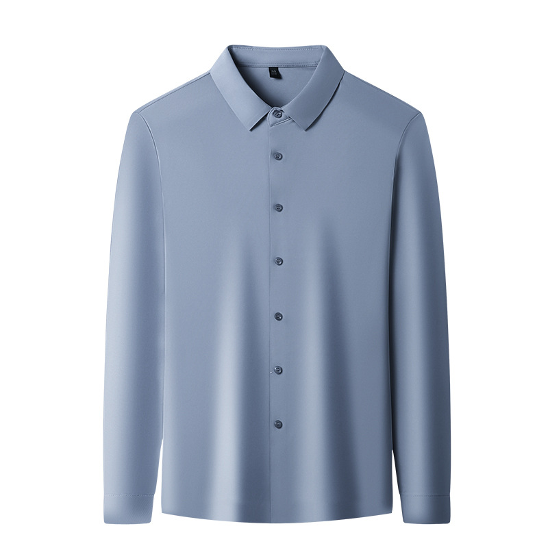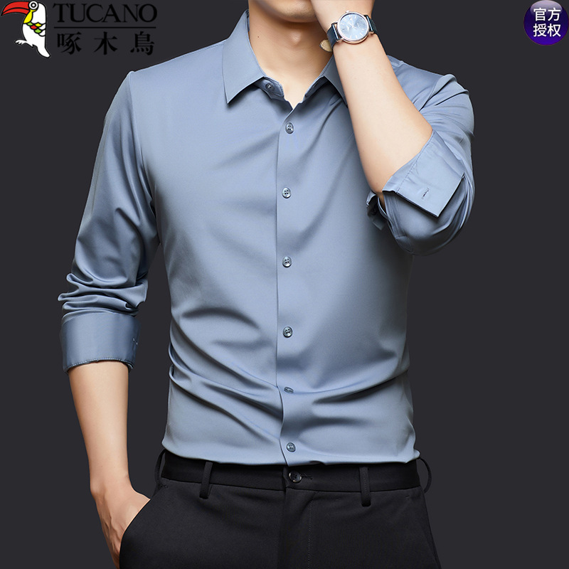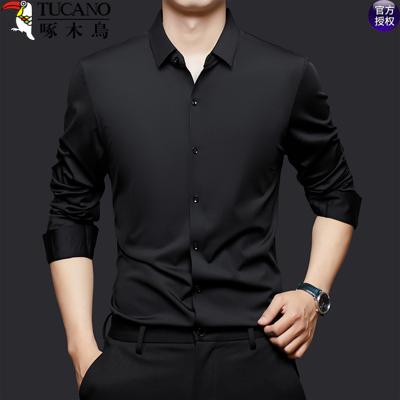 啄木鸟免烫长袖衬衫男士2025秋季新款商务休闲职业成熟男纯色衬衣