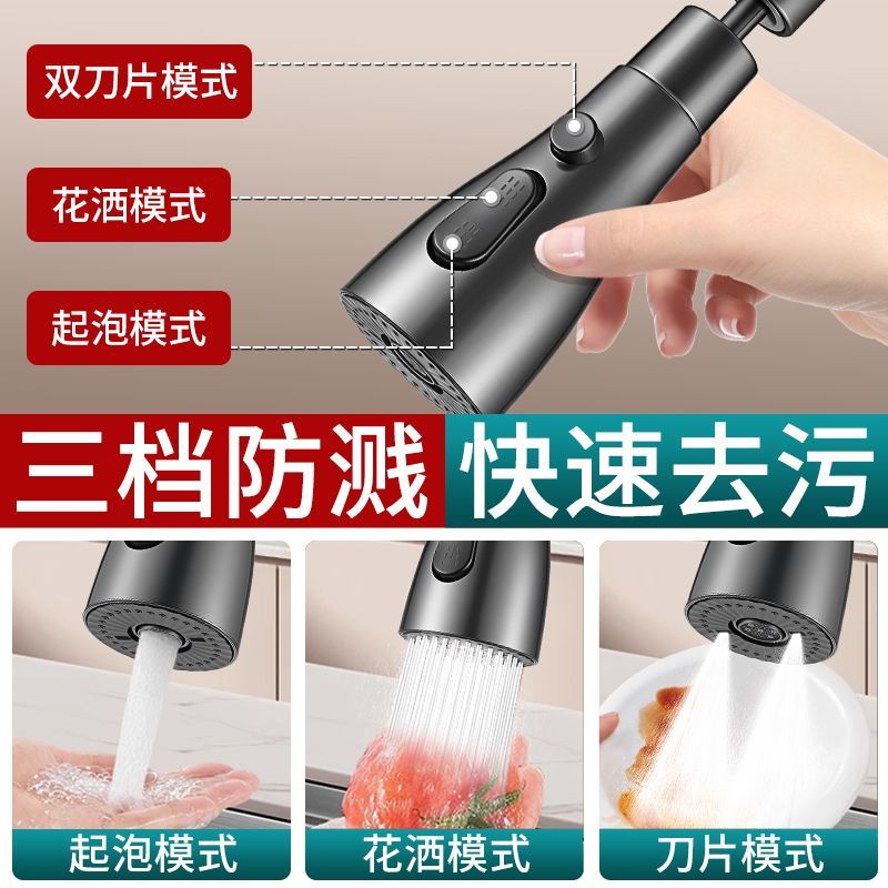 规格银色【通用三档●加长款】增压防溅+万向旋转