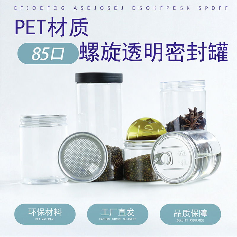 83口径pet食品包装罐塑料瓶透明塑料易拉罐厂家现货密封罐广口瓶