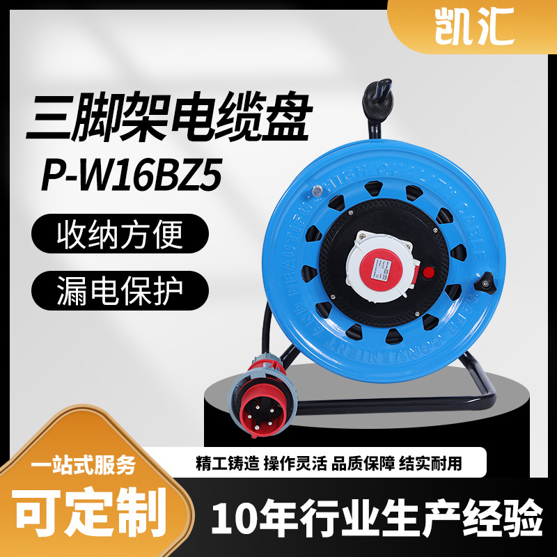 三角架电缆盘带工业插座IP44级-16A3芯(P-W16S3)工业电缆盘批发