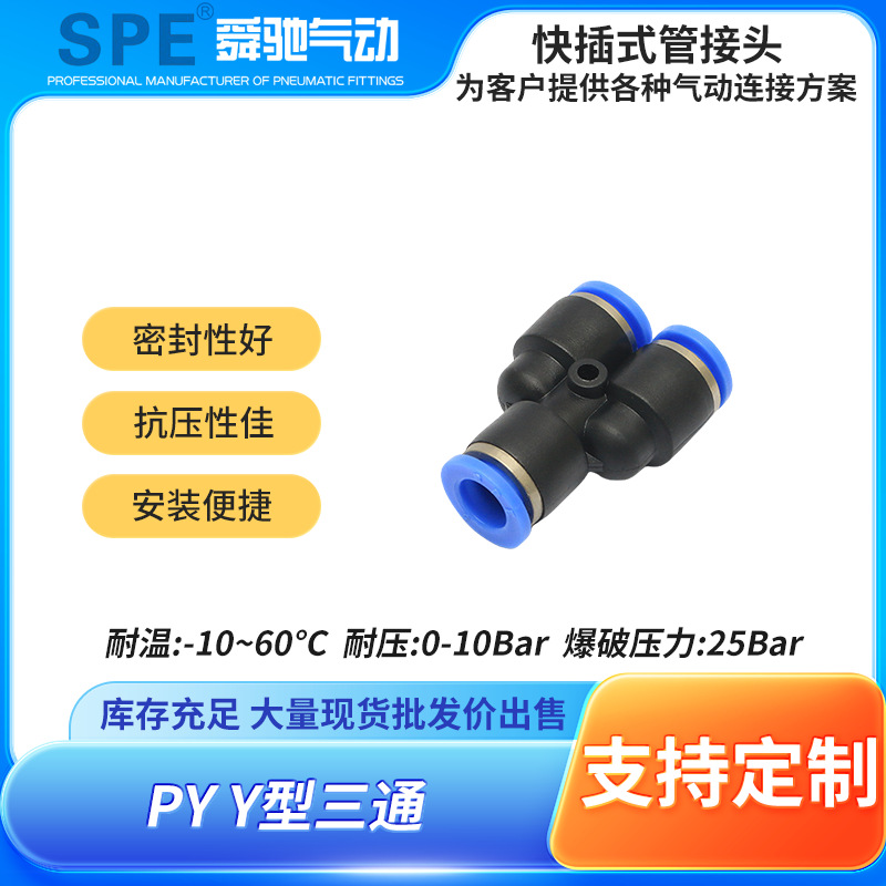 厂家供应PY接头Y型三通接头气管气动塑料快插接头PY4/6/8/10/12