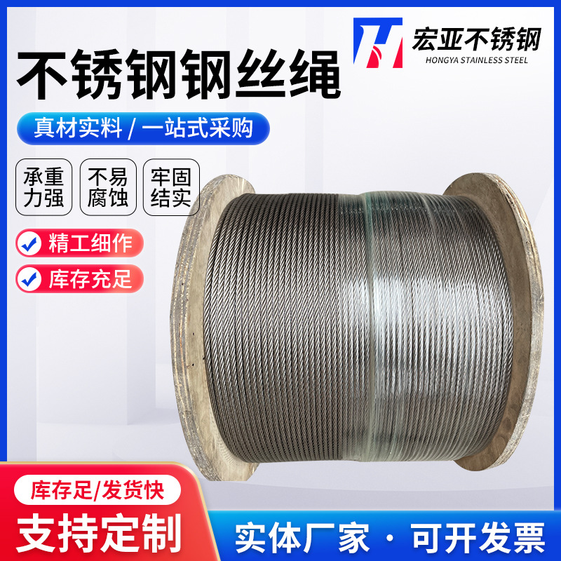 厂家供应304不锈钢结构起重钢丝绳多股包塑包胶建材设施材料批发