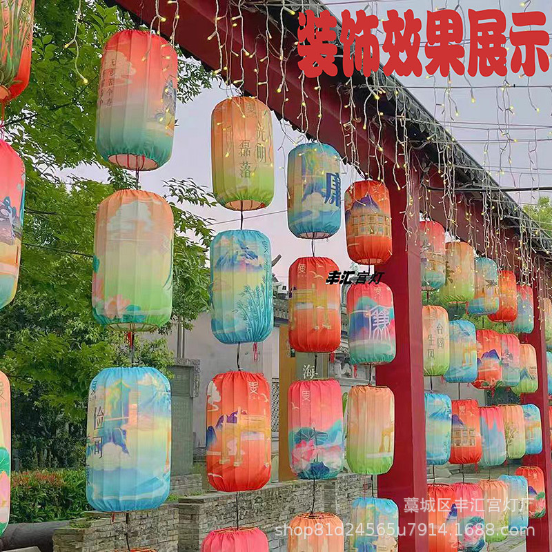 新中式国潮弹力布热转印灯笼五一旅游景点景区火锅店网红墙装饰灯