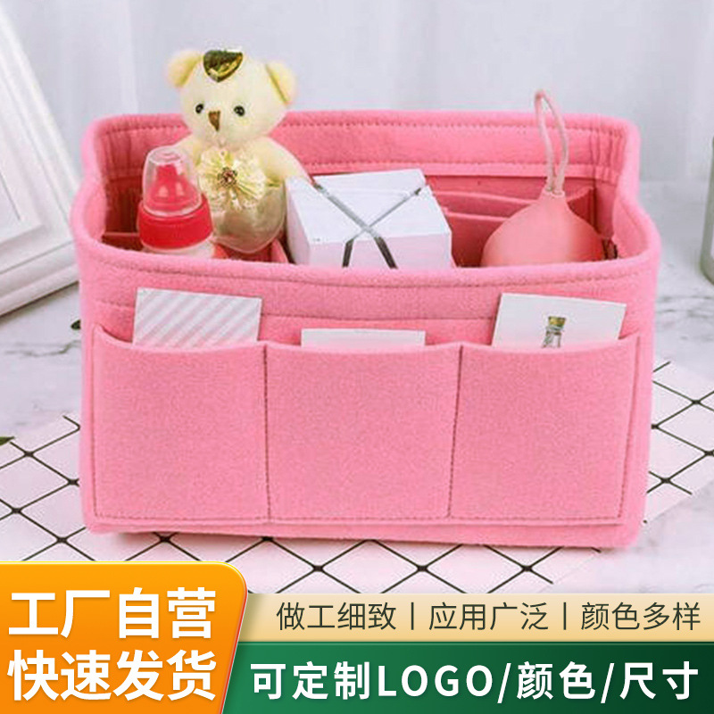 毛毡隔层化妆包多功能内置收纳包手提毛毡袋中包隔层毛毡化妆包