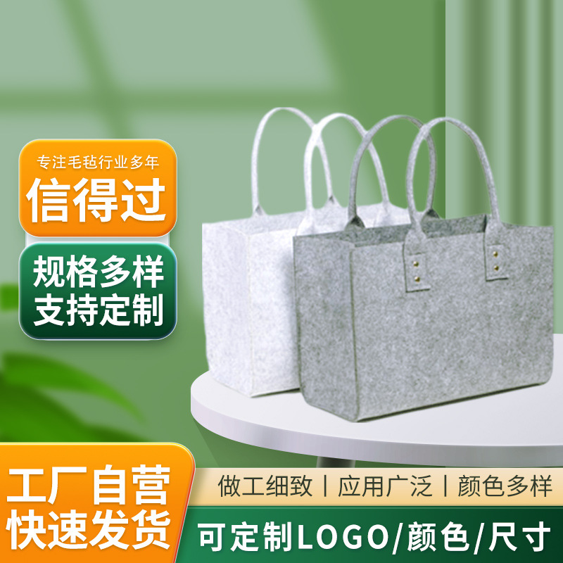 厂家供应毛毡手提包便携旅行大容量杂物收纳袋购物包毛毡手提包