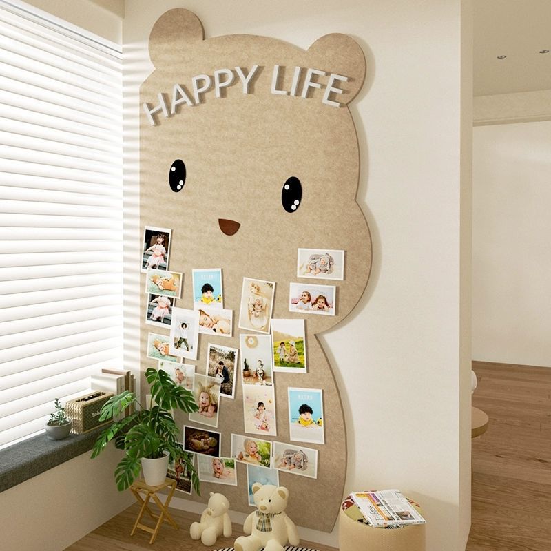 卡通开心熊毛毡照片墙 客厅背景板毛毡板展示墙装饰创意墙面装饰