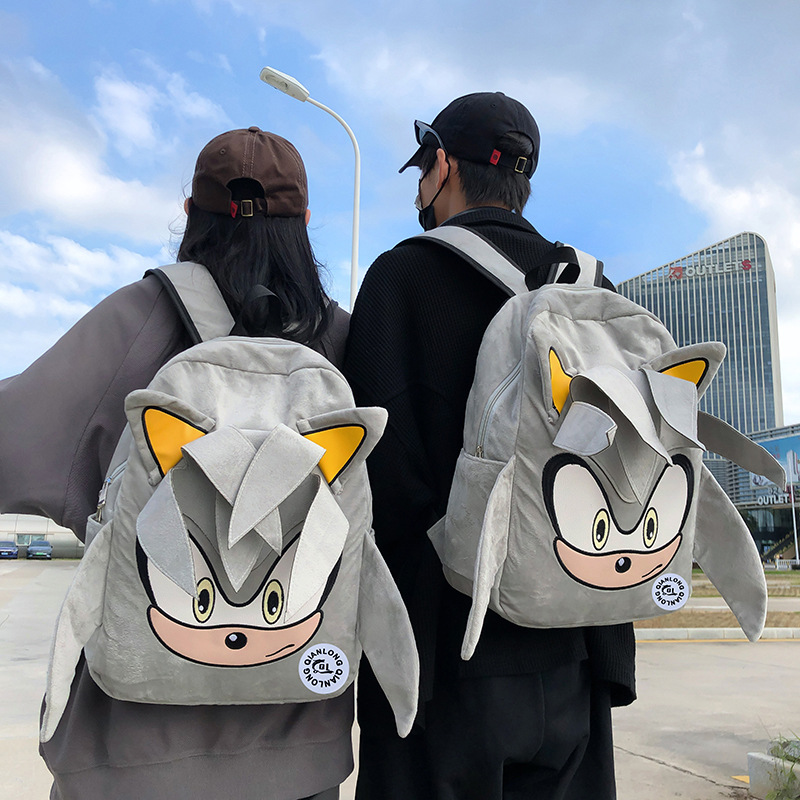 索尼克双肩包毛绒书包可爱小众大容量卡通学生校园包包潮潮趣设计