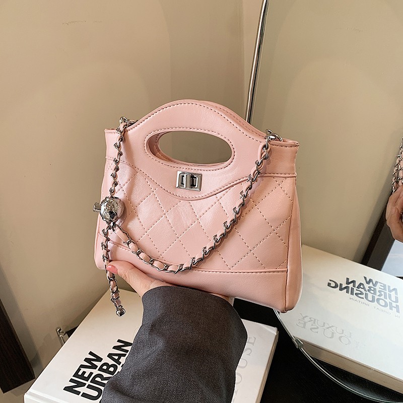 小香风手提菱格链条包包2024新款单肩手提包斜挎包休闲百搭通勤